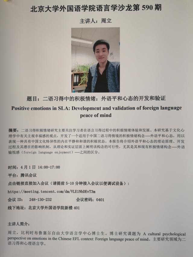 财神在线官网语言学沙龙第590期 二语习得中的积极情绪:外语平和心态的开发和验证
