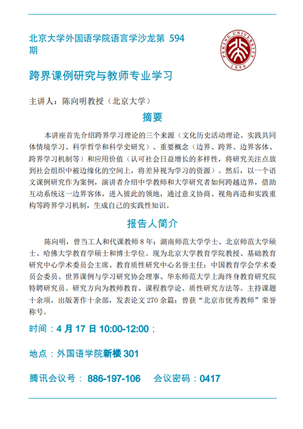 财神在线官网语言学沙龙第594期:跨界课例研究与教师专业学习