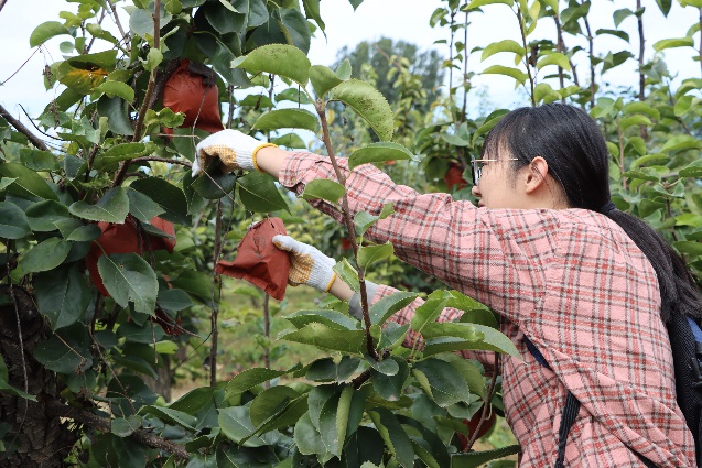窦店金梨园里,同学们迎来了最令人期待的实践环节——金梨采摘与装箱。时值盛果期,园内两万余株梨树硕果累累,在果农的指导下,同学们学习辨别成熟度,掌握采摘技巧,小心翼翼地将一个个金黄饱满的金梨采摘下来,再进行分拣、包装、装箱。整个劳动过程既体现了现代农业的标准化操作,又让同学们亲身感受到丰收的喜悦。