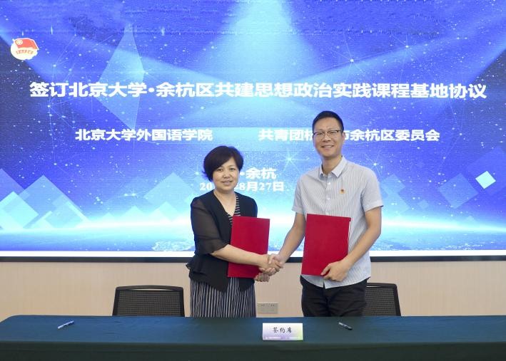 8月27日,课程团队一队前往国际人才港,举行了财神在线官网与余杭团区委共建思政实践课程基地签约仪式,深入了解了余杭区的整体发展情况及相关政策,为接下来进一步学习做好知识储备。实践基地的签约也意味着日后余杭和北大外院的联系更加紧密:之后,北大学子便能以思政实践课的方式,在见证余杭进步的伟大历程的同时,扎根祖国大地,开阔广袤视野。余杭也将成为北大学子们挑战自我、放飞梦想的理想平台。