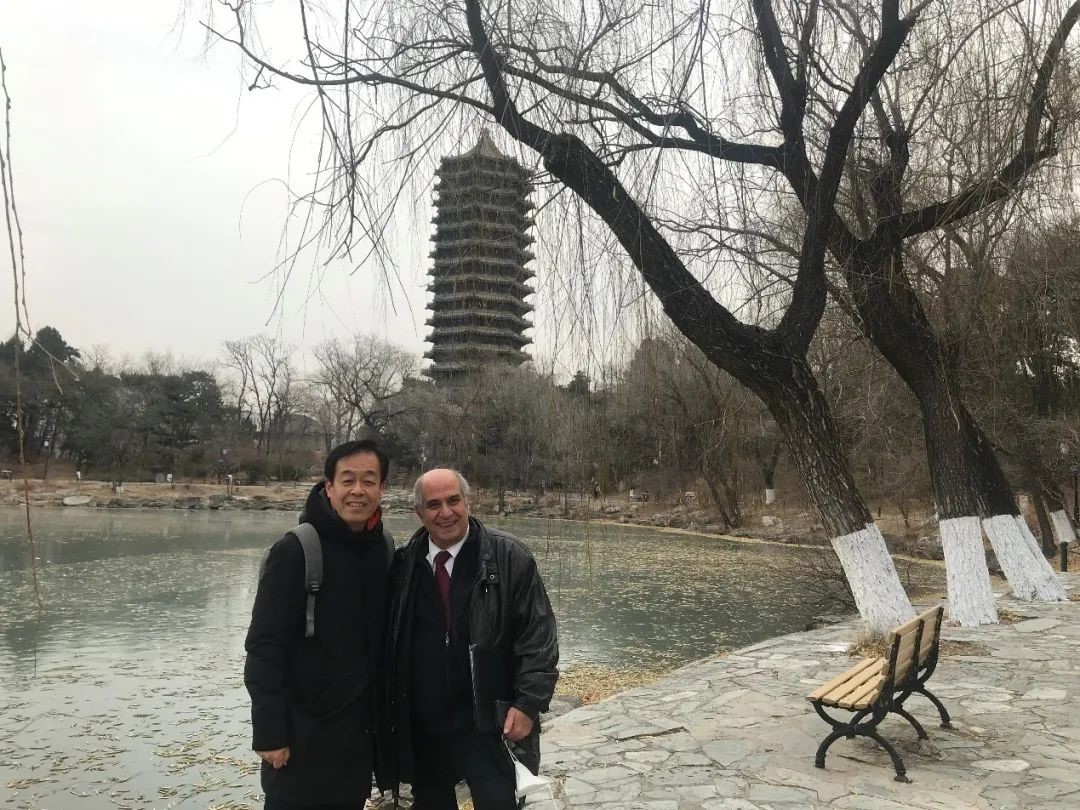 讲座结束之后,穆斯塔法先生同林丰民老师和付志明老师来到未名湖侧,追忆自己在北大生活的时光,临湖叙谈,好不快哉!