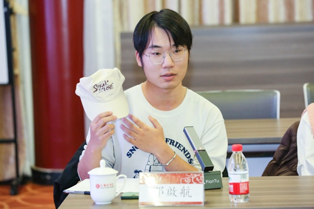 邓啟航从珍藏的外院文化节文创说起,回顾了自己在学院文化节、中韩交流协会进行韩语教学的经历。他在丰富多彩的学生工作和社团活动中,充分发挥语言优势,逐步提升跨文化交往能力,在精进自我和服务他人的过程中收获成长。