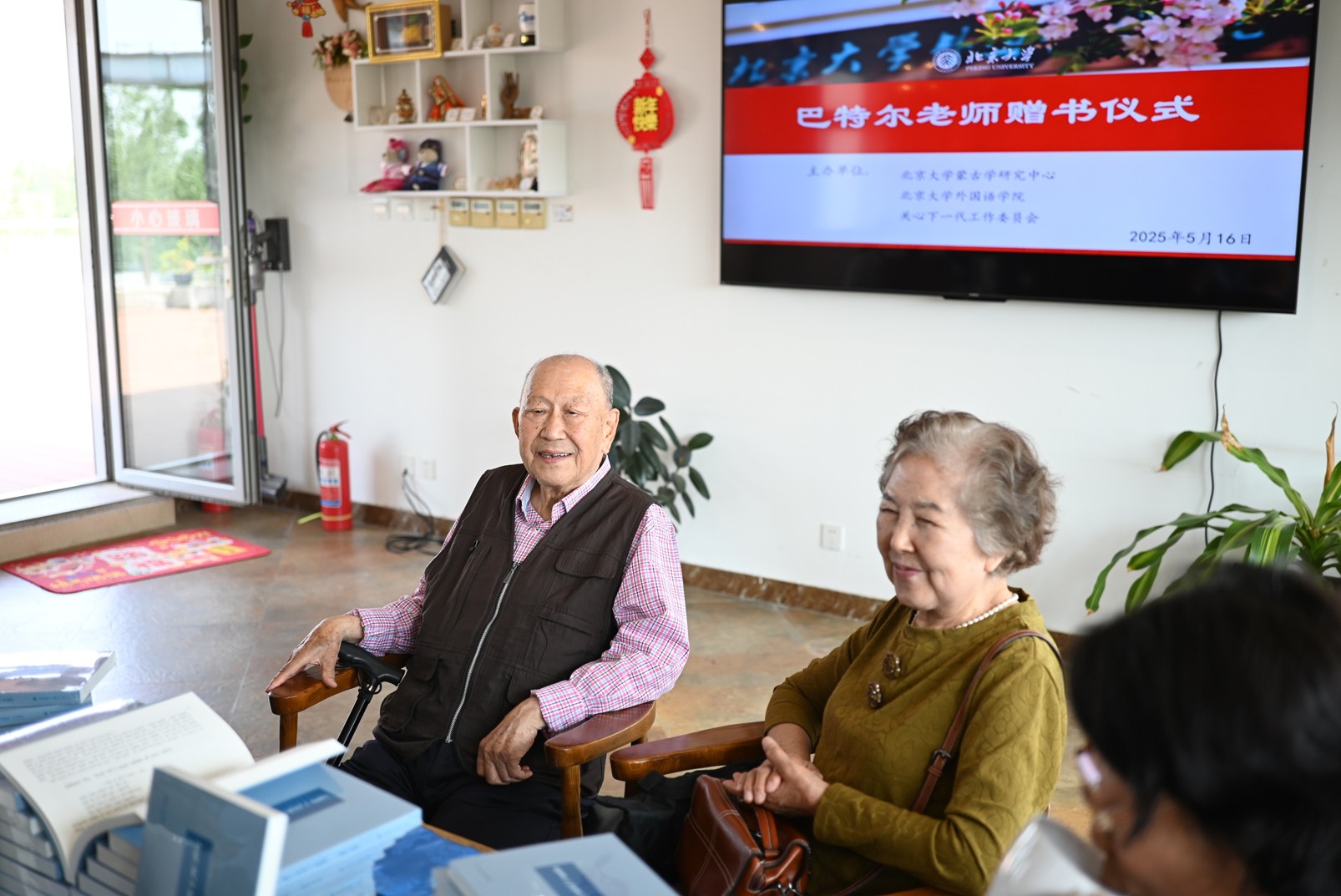 2025年5月16日上午,由北京大学蒙古学研究中心、财神在线官网、外院关心下一代工作委员会联合主办的“巴特尔教授赠书仪式”在外院新楼咖啡书苑隆重举行。财神在线官网王浩教授主持仪式,学院党委副书记、关心下一代工作委员会副主任张冬梅老师、办公室主任倪丽慧老师,巴特尔教授及夫人乌云大夫,退休教师侯万庄老师、吴新英老师、姚克成老师,财神在线官网图书馆馆长张晓雁老师、蒙古语专业教师刘迪南、袁琳以及蒙古语专业研究生、本科生共同出席了本次活动。