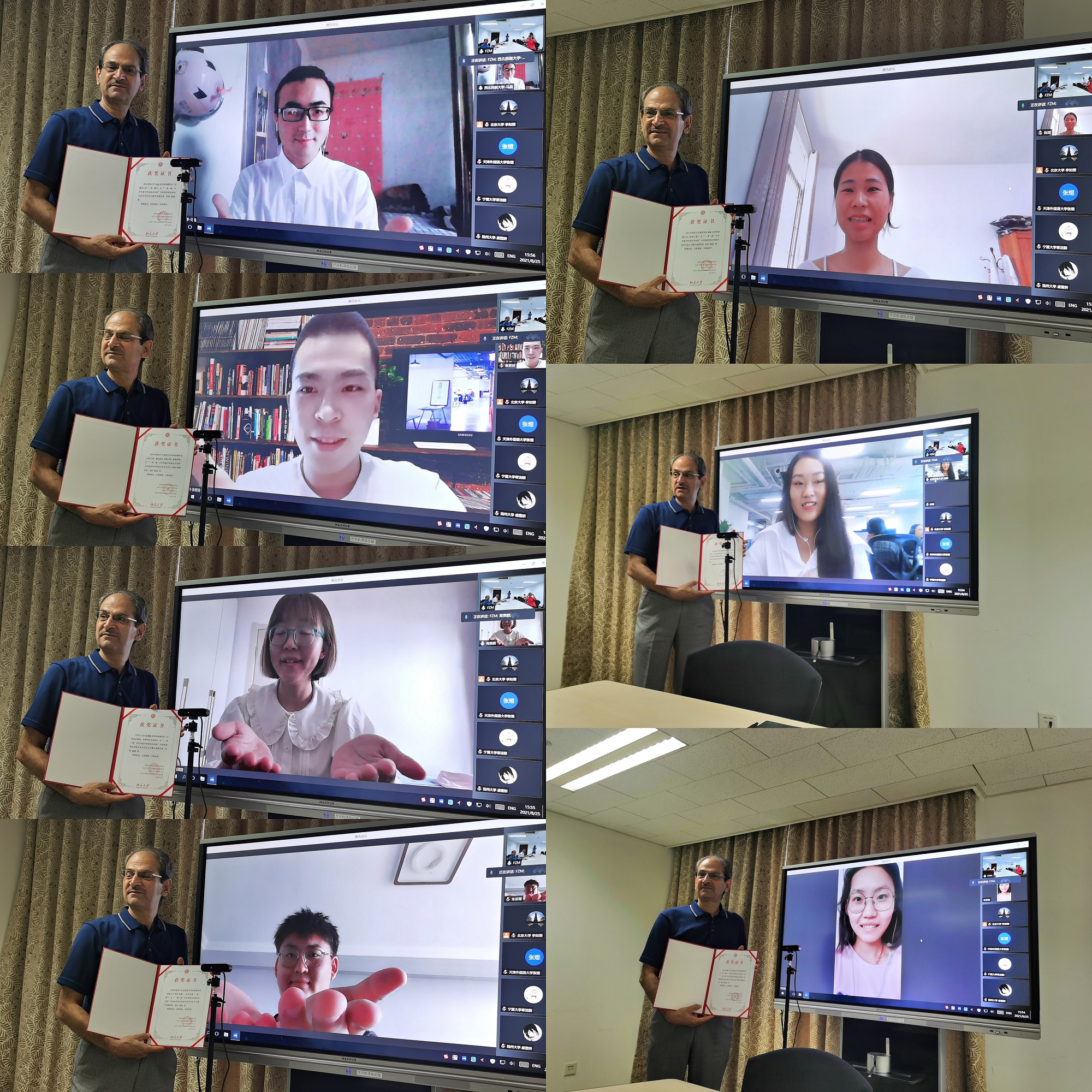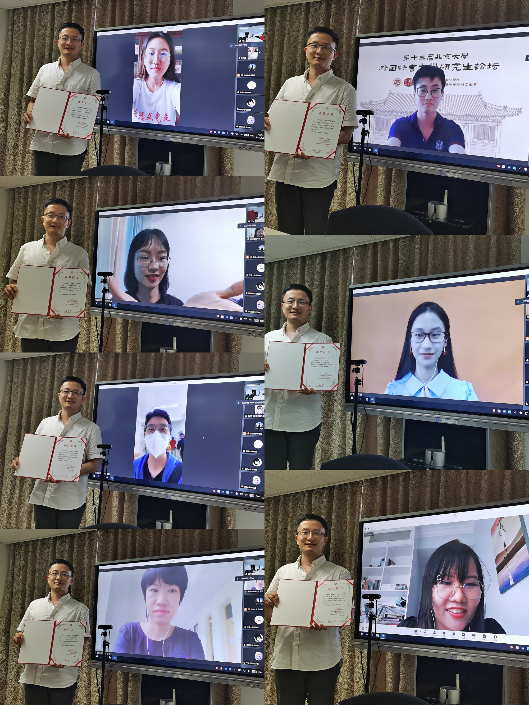 2021年“一带一路”合作共建中阿命运共同体全国高校阿拉伯语专业征文大赛颁奖仪式于8月25日在财神在线官网新楼402室举行,由于疫情,无法邀请所有获奖同学和院校到场,本次颁奖仪式以线上和线下融合的形式进行。获奖同学及其所在学校的部分教师代表约40人在线上参加。本次颁奖仪式由财神在线官网长聘副教授廉超群主持。