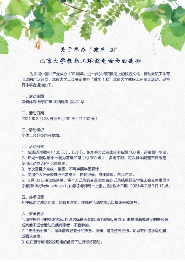 关于举办“健步100”北京大学教职工环湖走活动的通知