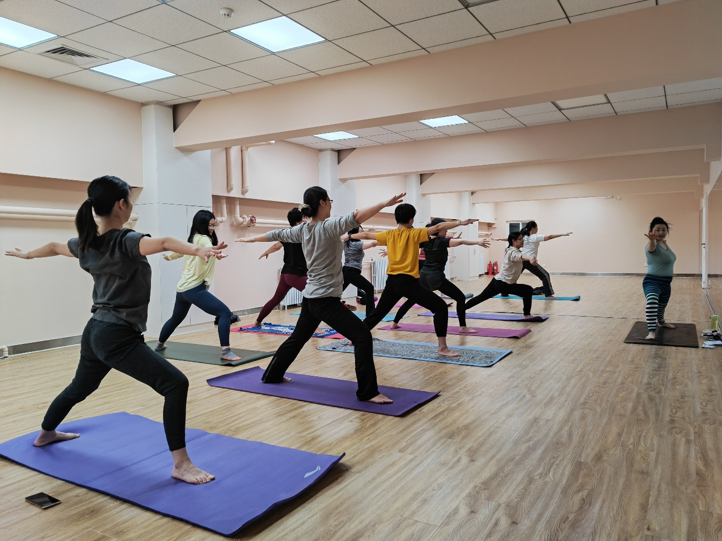 为构建和谐财神在线官网、缓解教职工长时间案牍工作的疲劳状态,2022年春,财神在线官网工会聘请专业瑜伽教练带领老师们进行每周一次锻炼。在瑜伽老师的指导下,通过运动身体、调控呼吸,控制心情,以保持健康的身体,获得身心愉悦轻松的状态。