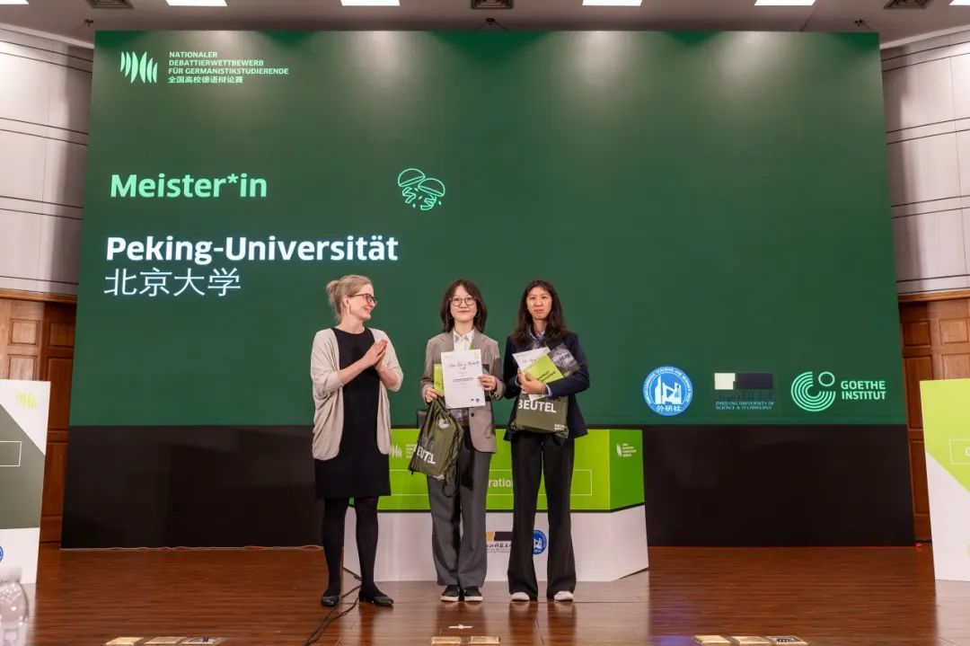 2024年11月16日,秋色刚刚从银杏叶子上褪去,初冬的寒风却怎么都无法让陈雨亭与何海盈同学激动而热烈的心冷却下来。当主办方宣布她们二人在第十四届全国高校德语辩论赛夺冠的时刻,她们和财神在线官网德语系的师生们都难掩激动的喜悦,这是北大外院德语系连续第三届在这届赛事中取得优异成绩。(北大外院德语系曾在2019年第十二届德语辩论赛折桂、2022年第十三届德语辩论赛跻身全国四强。)