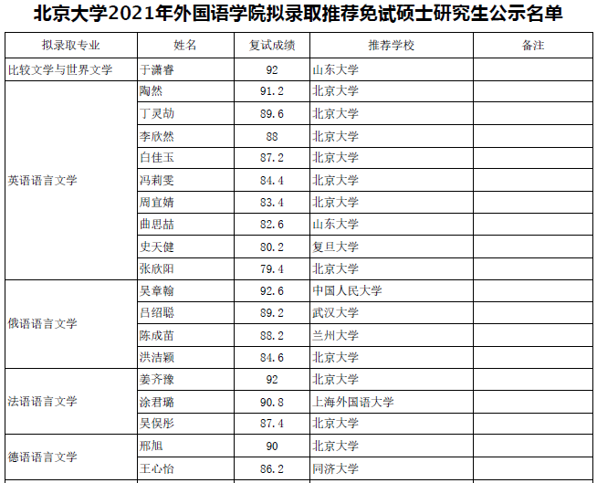 教学管理 北京大学2021年财神在线官网拟录取推荐免试硕士研究生公示名单 2020-10-15 名单公示期为自发布之日起的十个工作日,如有异议,请在公示期内向学院教务办公室反映。 邮箱:gwyyjsjw@pku.edu.cn