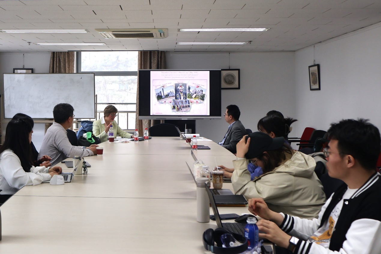 讲座伊始,施越助理教授介绍了主讲人的基本情况。主讲人斯维特兰娜·戈尔舍尼娜是资深中亚研究学者,历史学博士,法国国家科学研究中心/索邦大学东欧、巴尔干和中欧文化和社会实验室(Cultures et sociétés d'Europe orientale, balkanique et médiane, EUR’ORBEM)主任。她熟练掌握俄语、法语、德语、英语等语言,早年师从苏联中亚考古学界著名学者加琳娜·普加琴科娃(Galina Pugachenkova),发表出版论著数十篇,长期在乌兹别克斯坦撒马尔罕、塔什干等地开展实地研究,具有丰富的档案研究和文化遗产保护的工作经验。