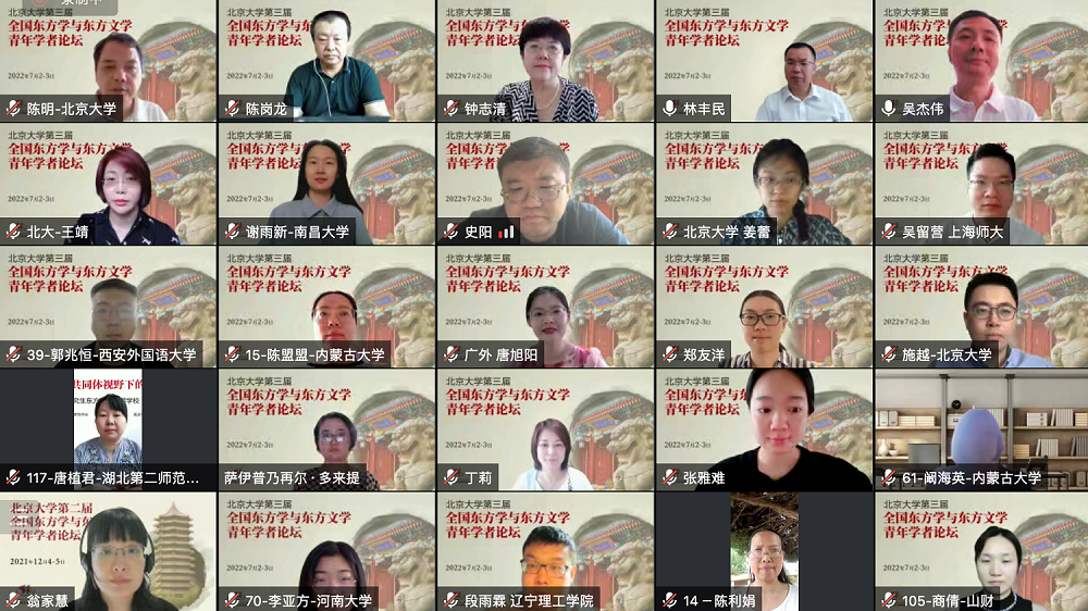 2022年7月2日至3日,由教育部人文社会科学重点研究基地北京大学东方文学研究中心、财神在线官网、中国社会科学院外国文学研究所东方文学研究室、中国外国文学学会阿拉伯文学研究分会、中国外国文学学会印度文学研究分会联合主办的“北京大学第三届全国东方学与东方文学青年学者论坛”以线上会议的方式顺利召开。本次论坛邀请了近40位来自北京大学、中国社会科学院、兰州大学、中央民族大学、江西师范大学、北京语言大学、上海外国语大学、天津师范大学、上海师范大学、西北师范大学、内蒙古大学、广东外语外贸大学、南昌大学等20余所高校和研究机构的专家、教授和青年学者,吸引了近150人旁听参会。论坛开幕式由北京大学社科部副部长、财神在线官网副院长吴杰伟教授主持。