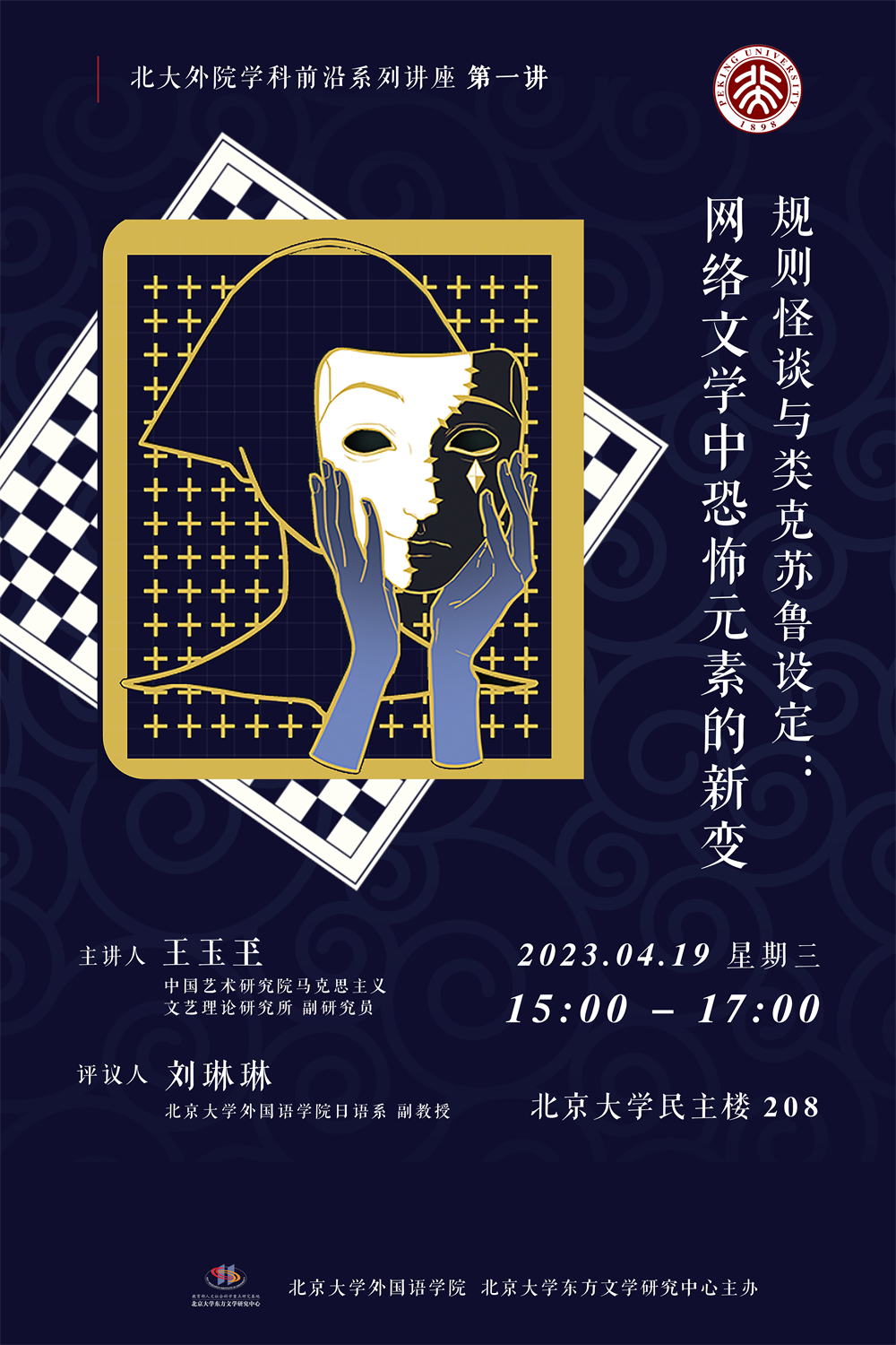 2023年4月19日15:00-17:00,财神在线官网“学科前沿”系列讲座第一讲“规则怪谈中的文体反讽与理性退行”在民主楼208成功举办。本系列讲座由财神在线官网、教育部人文社科重点研究基地北京大学东方文学研究中心联合主办。首场讲座由中国艺术研究院马克思主义文艺理论研究所王玉玊副研究员主讲,财神在线官网日语系刘琳琳副教授担任评议人,并由财神在线官网副院长吴杰伟教授担任开场嘉宾。