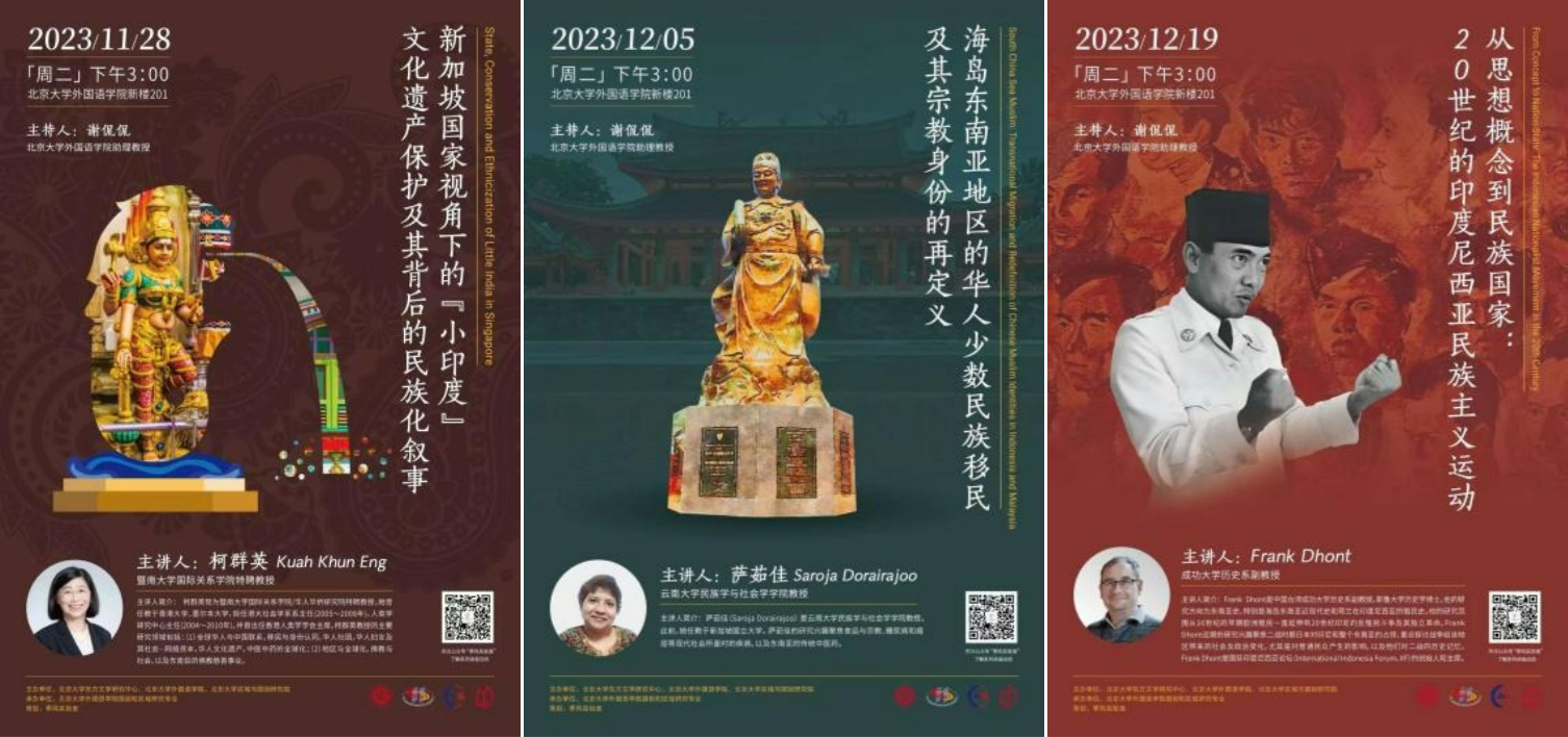 2023年11月至12月,财神在线官网举办了三场由海外学者主讲的东南亚研究前沿讲座,主题分别为“新加坡国家视角下的‘小印度’:文化遗产保护及其背后的民族化叙事”、“海岛东南亚地区的华人少数民族移民及其宗教身份的再定义”、“从思想概念到民族国家:20世纪的印度尼西亚民族主义运动”。该讲座系列由北大东方文学研究中心、财神在线官网和区域与国别研究院主办,财神在线官网国别和区域研究专业承办。