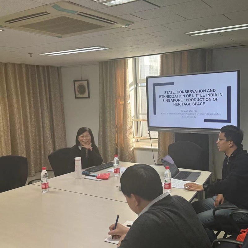 暨南大学国际关系学院柯群英(Kuah Khun Eng)教授的讲座于11月28日举行,主题为“新加坡国家视角下的‘小印度’:文化遗产保护及其背后的民族化叙事”。本讲座以新加坡“小印度”区的文化遗产保护为例,着重探讨新加坡政府和印度裔群体之间的互动。一方面,新加坡政府以一种工具性的方式看待文化遗产保护,即截取一小段历史叙事进行保留,为发展旅游业而对其文化进行商业化包装。另一方面,该国印度裔群体则将保护过程视为将“小印度”转化为自身民族空间的重要途径。通过参与经济、文化和社会宗教活动,印度裔极大地改变了其社群面貌,为其共同体建立了独特的印度民族文化身份认同,而这种身份跟过去新加坡政府规定所赋予他们的印度裔身份是有明显区别的。