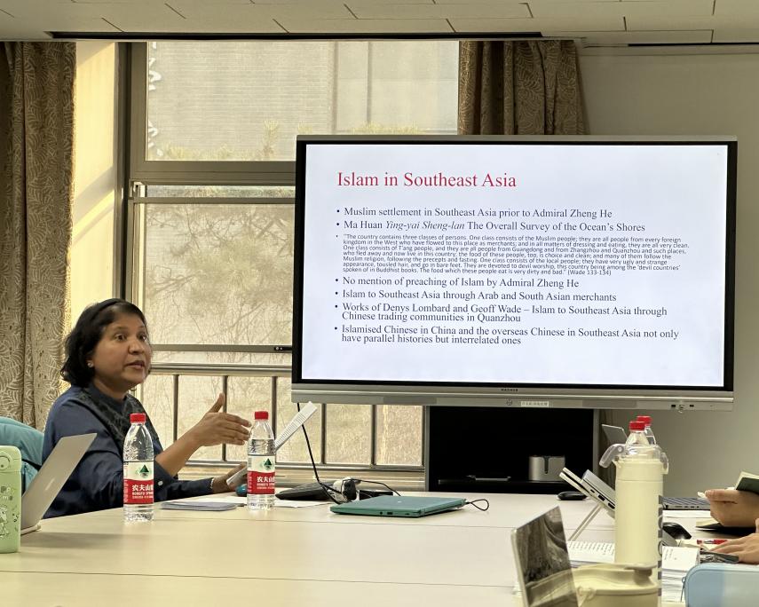 云南大学民族学与社会学学院教授萨茹佳(Saroja Dorairajoo)的讲座于12月5日举行,题为“海岛东南亚地区的华人少数民族移民及其宗教身份的再定义”。此次讲座聚焦印度尼西亚和马来西亚两国的新一代华人少数民族移民,探讨他们的“中国性”和“华人性”如何被重新提炼和定义。海岛东南亚最重要的伊斯兰宗教网络起源于中东和南亚,但新一代华人少数民族移民与当地的宗教信仰和民族习俗积极互动,在当地产生了深远的影响,从而引发人们对“环南中国海宗教网络“的进行重新审视。