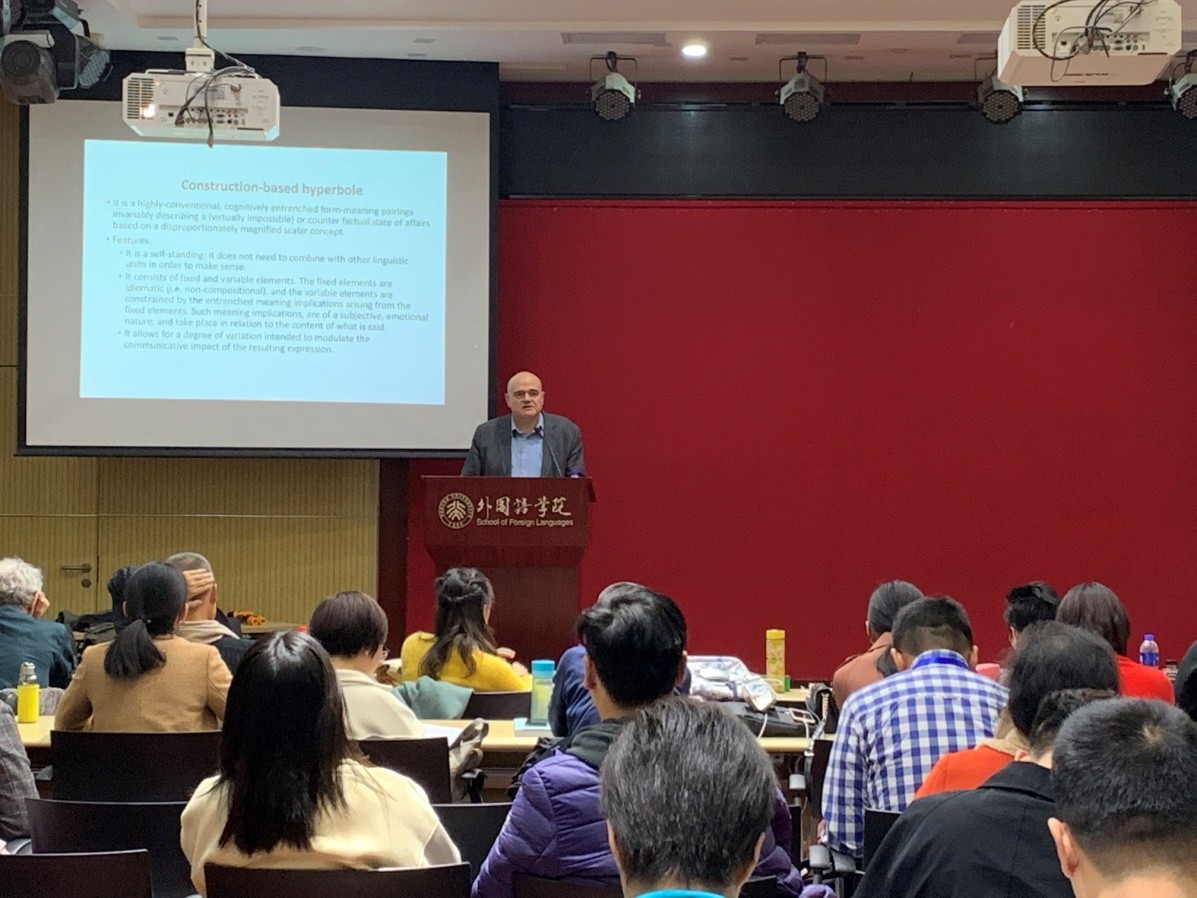 2019年11月8日,由北京航空航天大学主办、北京大学等高校协办的第十九届中国认知语言学国际论坛(CIFCL)第十讲,暨财神在线官网语言学沙龙第578期,在财神在线官网新楼501举行。本次论坛邀请到了瑞士纳沙泰尔大学的Martin Hilpert教授和西班牙拉里奥哈大学的Francisco José Ruiz de Mendoza Ibáñez教授,讲座的题目分别为“结构变化和分布语义”(Constructional Change and Distributional Semantics)、“夸张意义建模”(Modeling Hyperbolic Meaning)。