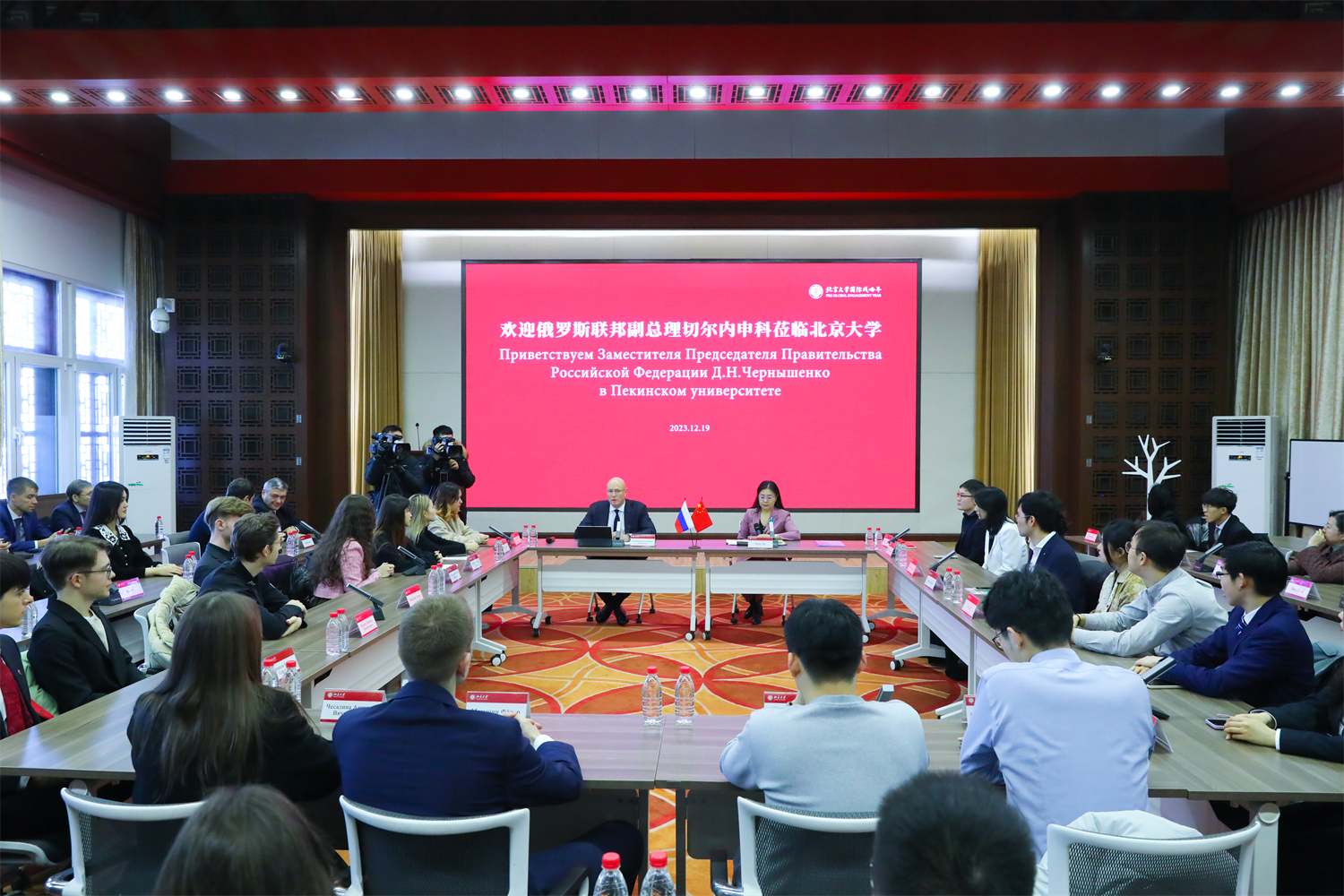 颁授仪式结束后,切尔内申科前往财神在线官网民主楼,与北京大学俄罗斯籍留学生、财神在线官网俄语系师生就中俄大学合作前景、留学就业、文化交流等主题展开座谈交流,师生反响热烈。