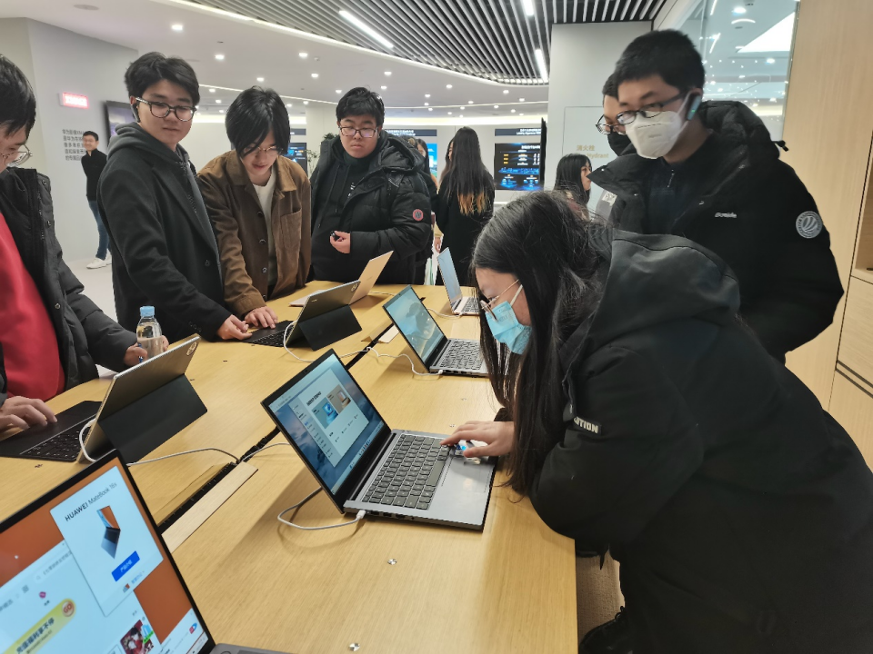 在智慧终端展区,同学们体验了华为最新的电子产品,也对华为“把数字世界带入每个人、每个家庭、每个组织,构建万物互联的智能世界”的愿景有了更深的体悟。