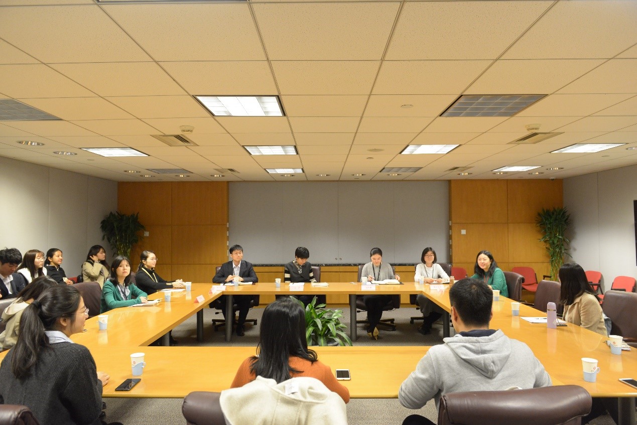 参观结束后,来自中国银行总行、分行的老师们与财神在线官网师生一行共同召开座谈会。座谈由中国银行青年工作负责人龚婉露主持。