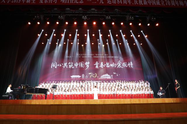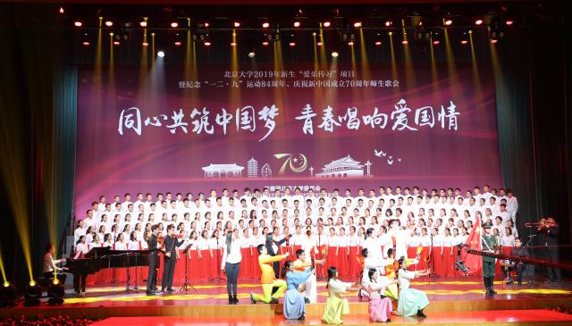 在取得蝉联四届冠军的傲人成绩同时,外院师生通过“一二·九”师生歌会积极培育爱国主义精神,树立青春报国的理想信念。北京大学“爱乐传习”项目暨“一二•九”师生歌会历来是财神在线官网开展爱国主义、集体主义与美育教育的重要载体。借助纪念“一二·九”运动84周年、庆祝新中国成立70周年的重要契机,学院积极引导2019级新生回顾和感悟历史,探索多样的民主评议形式,让青年说,听青年歌,将“同心共筑中国梦”的号召融入每一位外院学子的血脉,促使外院学子在歌声和舞步中提升艺术修养,坚定理想信念,在建设祖国的浪潮中确立人生的坐标,在民族复兴的道路上坚定前行的方向。