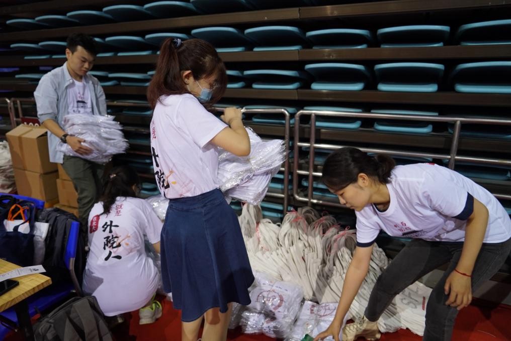 早上5:40,财神在线官网的师生们在邱德拔体育馆集合完毕,他们早早准备好迎新物料,将一切都布置得井然有序。学院党委副书记王恒、教务办公室和学生工作办公室的老师在迎新接待站满怀期待地等待着204位20级新生的到来。除老师外,共有22名学生志愿者参与到了此次迎新活动中,他们也和老师们一起为迎接新生做了充分的准备,付出了巨大的努力。他们中的一部分出现在迎新现场,负责维护现场秩序、收发材料、摄影摄像等;32楼女生宿舍门前也聚集了几位财神在线官网的学生志愿者,为需要提供搬行李帮助的女生服务。