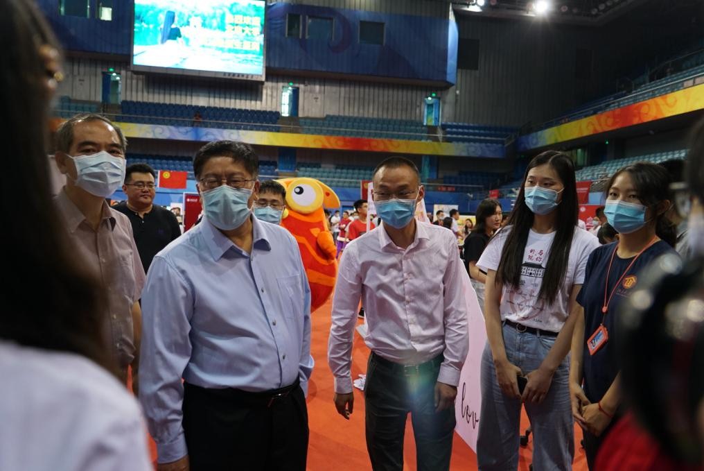 上午11:20左右,校党委邱水平书记一行来到财神在线官网迎新接待站关心迎新工作。邱水平书记在迎新展台前与师生亲切交谈,并询问了迎新的情况。