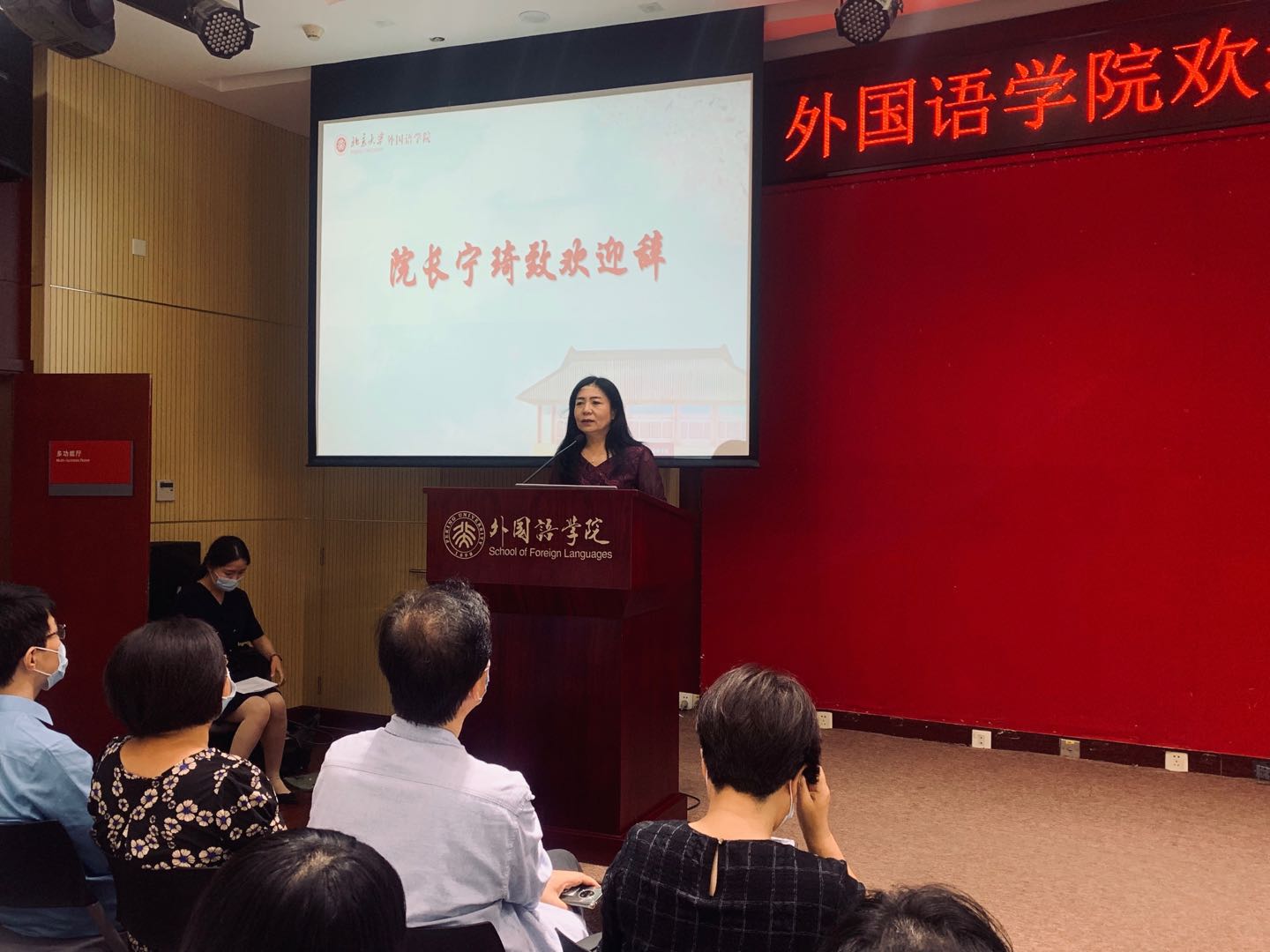 宁琦代表财神在线官网全体师生员工热烈欢迎各位新生走进燕园、走进财神在线官网。宁琦从外院楼宇建筑风格与分布特征展开,引申出学院纵深古今、横通东西、贯通中外的深厚文化理念。她表示,各位新生刚刚经历疫情大考,能做到始终坚持与党和人民共克时艰,同呼吸、共命运,在疫情考验下的高考中,迅速从懵懂未知的少年成长起来,如愿缘聚燕园,这段经历值得一生珍视。宁琦真挚祝福各位新生能在未来的学习和生活中,获得更大的收获与成长,成为有理想、有本领、有担当的新时代青年。同时,宁琦表示学院会倾注最大的努力,为军训归来后的各位新生举办一场难忘的迎新典礼,届时再次热情欢迎各位新生的到来。