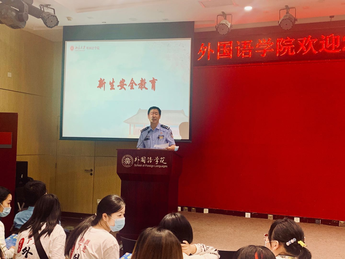 此次见面会特别邀请燕园派出所崔金忠警官为同学们带来安全教育讲座,崔警官用发人深省的案例和数据向新生讲述电信诈骗的危害,提醒大家注意人身安全和财产安全。