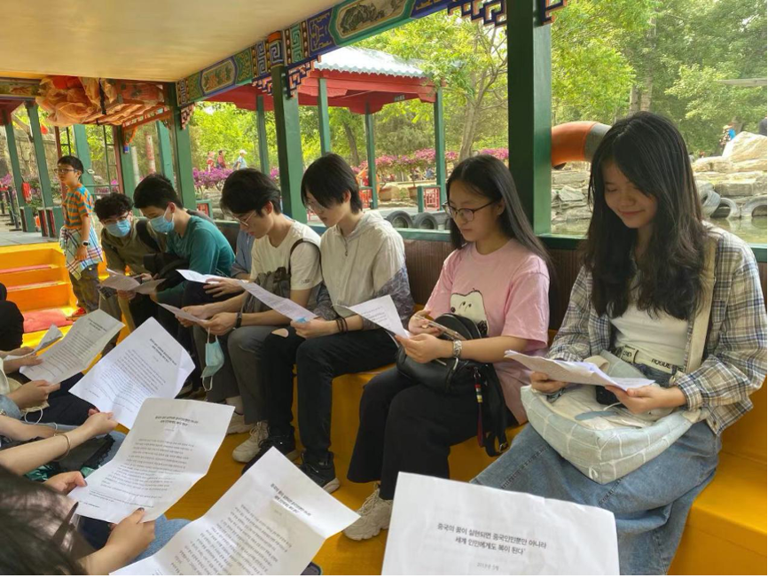 为庆祝中国共产党成立一百周年,财神在线官网2020级朝鲜语系本科生团支部于2021年5月22日前往圆明园,以“回望历史,立足当下”为主题开展团日及主题教育活动,深入学习了习近平主席在治国理政方面的重要讲话。活动过程中,支部同学不仅探访见证了中国近代斗争历史的皇家园林圆明园,并且在游览途中听取了由支部同学精心准备的一堂党课,根据习近平主席对与中国梦与人类命运共同体的系列论述,以专业为依托,深入探讨了新时代青年人的责任与担当。