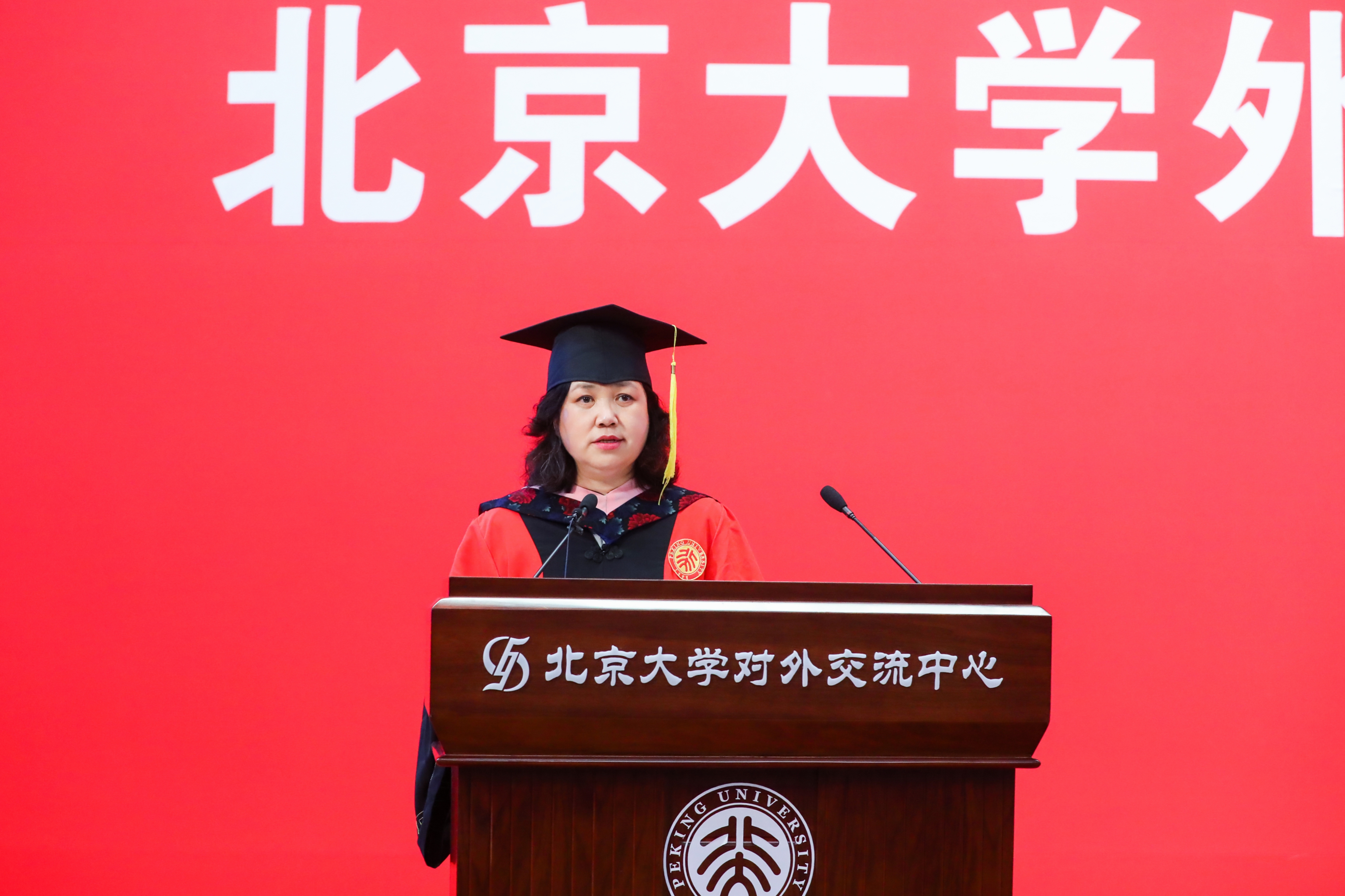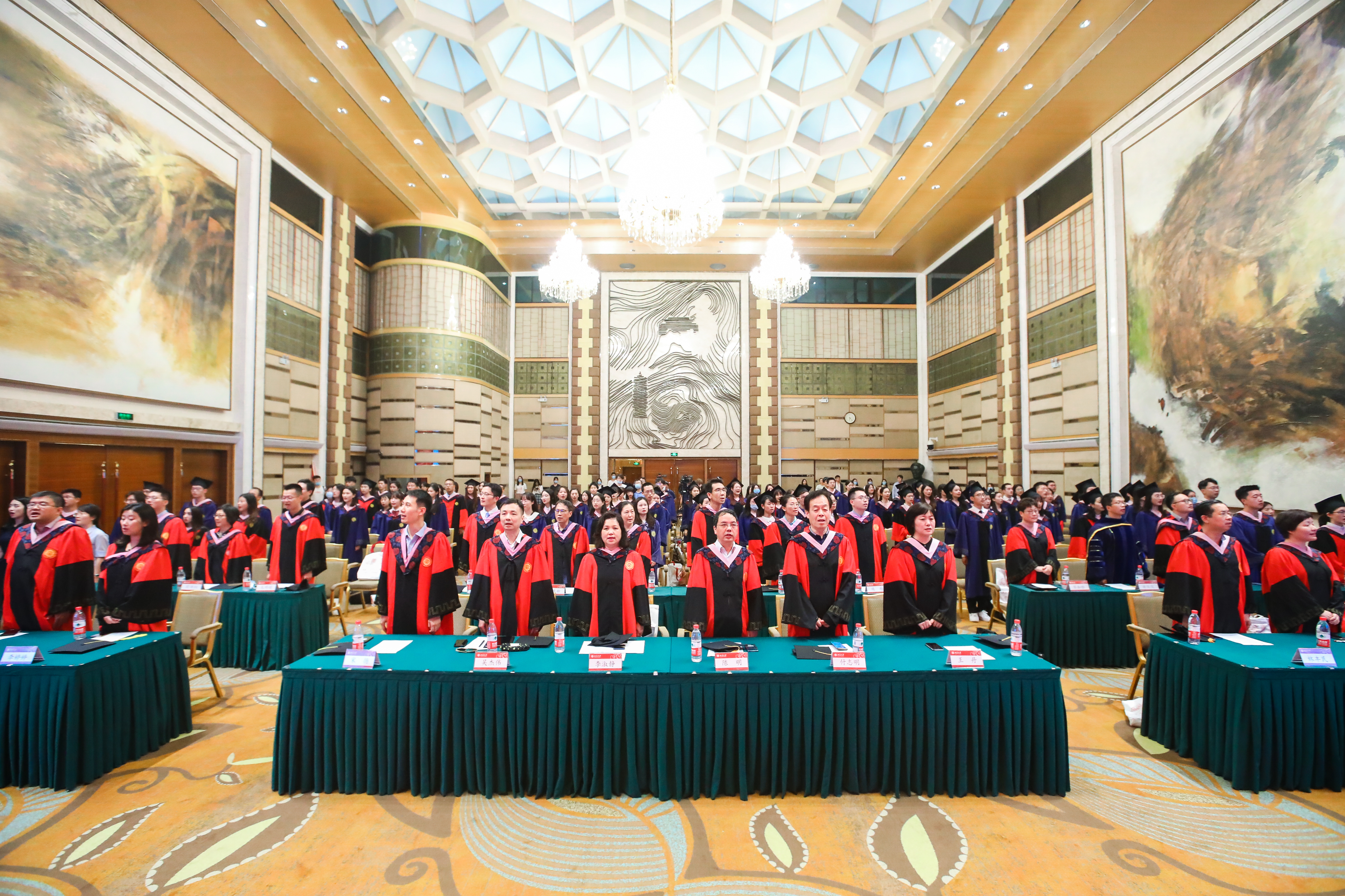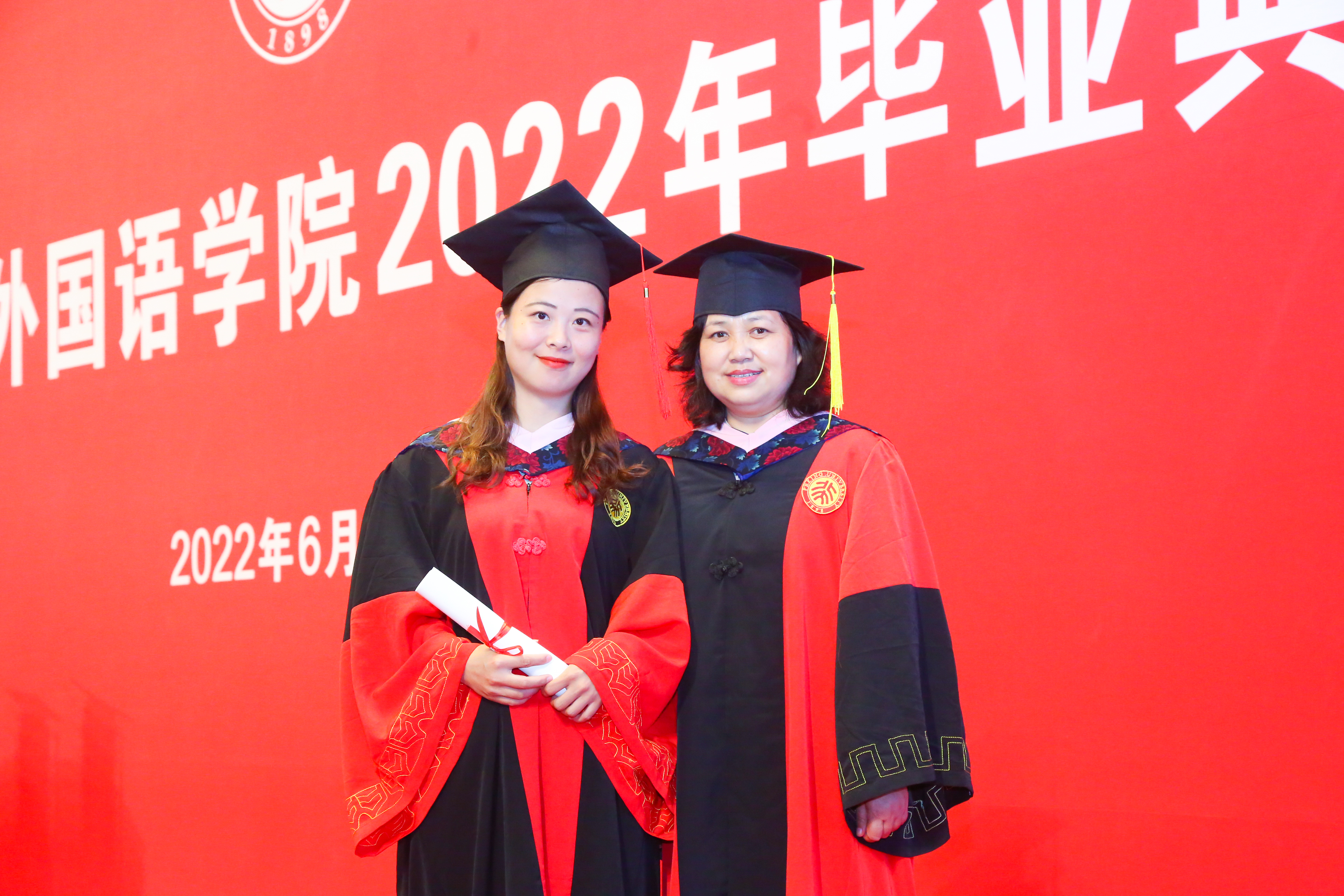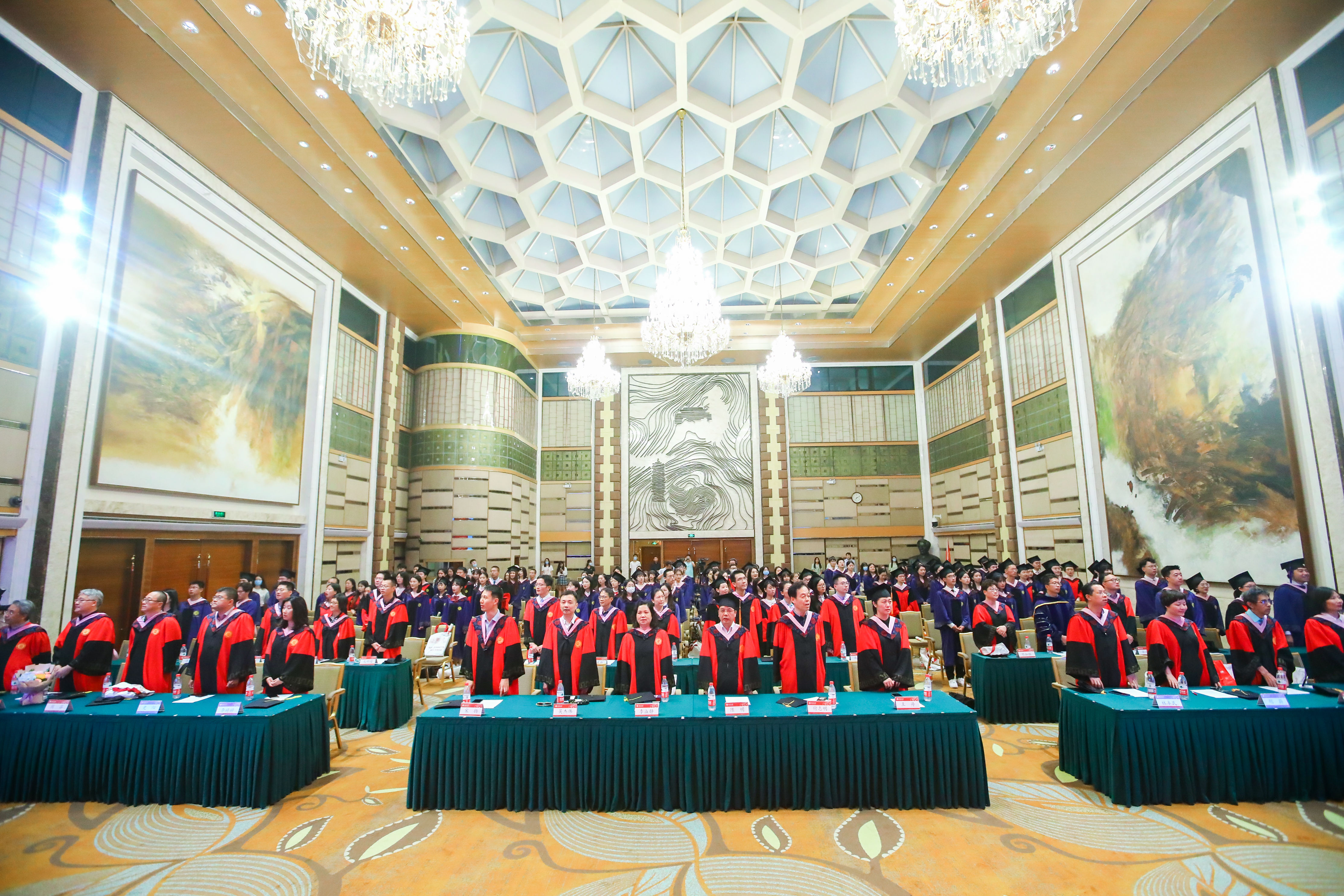 典礼临近尾声,全体师生起立合唱《燕园情》。“燕园情,千千结”,连接的是所有外院人的心,不变的是永恒炽热的师生情同学情。“眼底未名水,胸中黄河月”,荡漾的是北大外院学子的爱国之情,照亮的是奔赴祖国建设的奋斗之路。毕业生们用歌声作别,唱出了对彼此对师长的感激,唱出了对北大对外院的不舍,也唱出了开启崭新阶段、践行初心使命的决心。