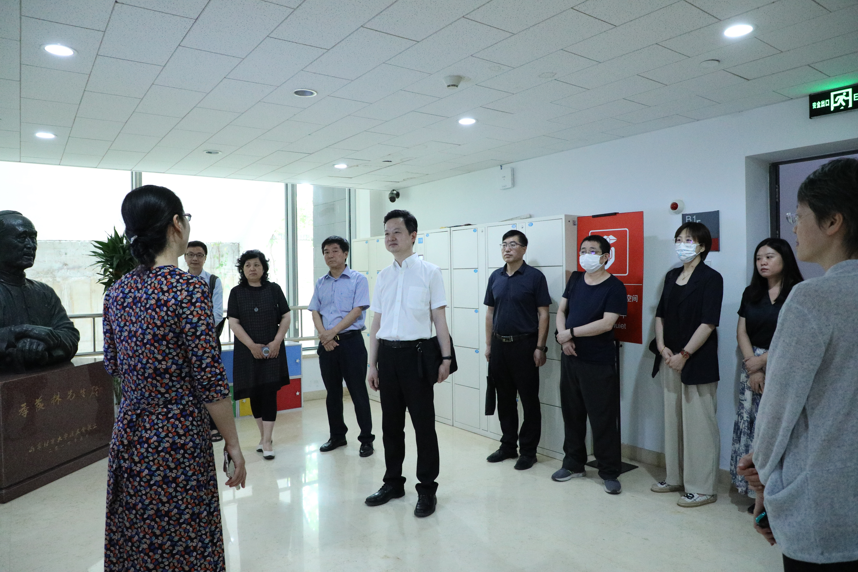 签约仪式前,华侨历史博物馆副馆长宁一、贾德成一行来到北京大学图书馆财神在线官网分馆参观,院党委书记李淑静、副院长吴杰伟陪同,图书分馆馆长张晓雁向华侨历史博物馆的领导和专家们介绍了外国语言文学学科的图书资料建设情况。