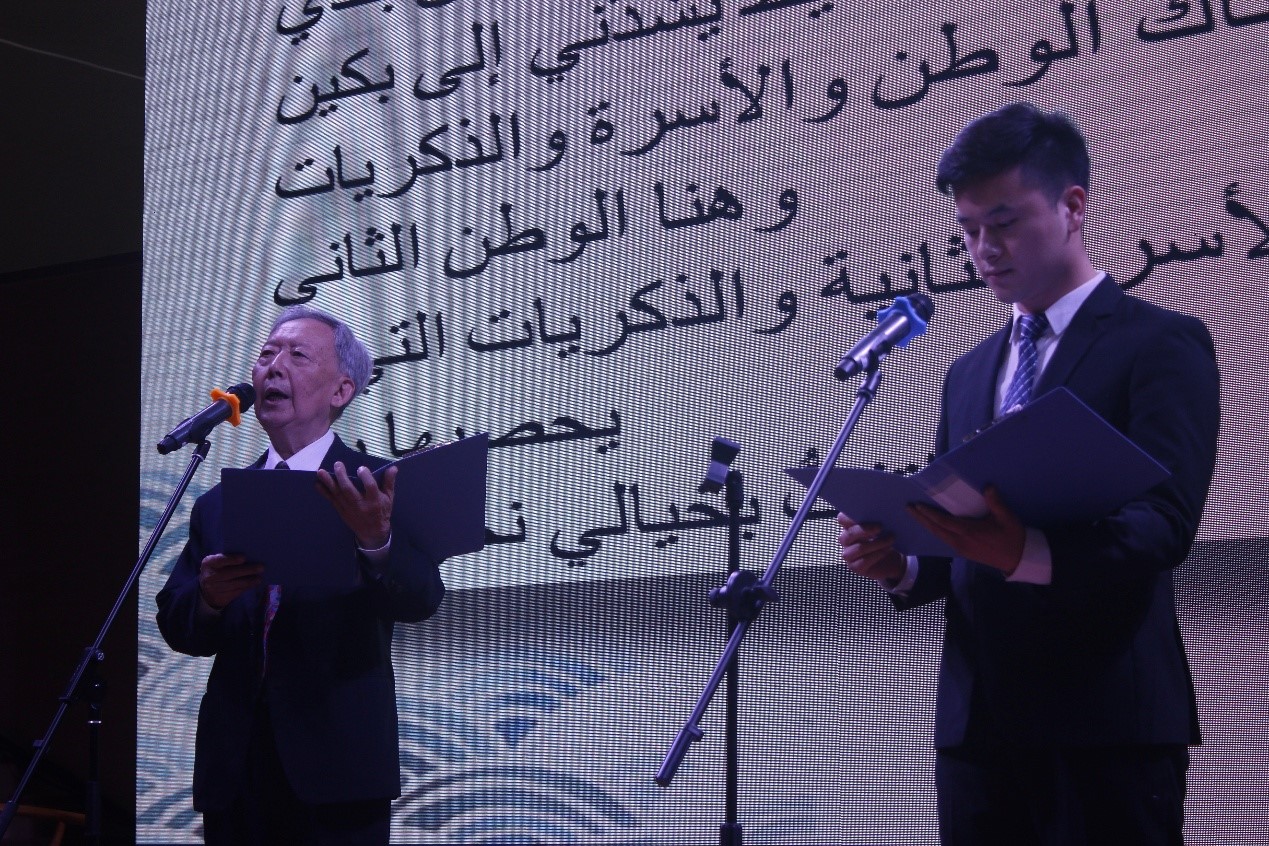 “院·诗酒华年”板块,张甲民老师和张江龙同学诵读《再见吧,北京》,缅怀已故诗人对北京、对燕园的一腔赤诚;弹唱朗诵《当你老了》向前辈致敬,感谢老一辈外院人将青春与汗水播撒在这一方土壤,浇灌出外文楼前的繁花似锦,也浇灌出北大外院的桃李芬芳。
