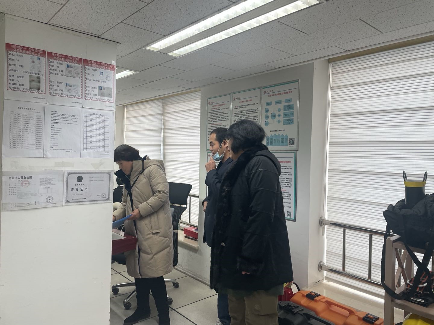 为进一步提升学院安保工作管理水平,为广大师生营造健康安全的学习生活环境,切实确保学校各项工作扎实有序开展,按照保卫部《关于开展北京大学2020年安全管理标准化建设检查评比工作的通知》的有关要求,2020年12月9日,主管安全工作副院长张冬梅老师带领学院办公室,并联合物业管理单位,对新楼、外文楼、民主楼进行了全面的安全检查。