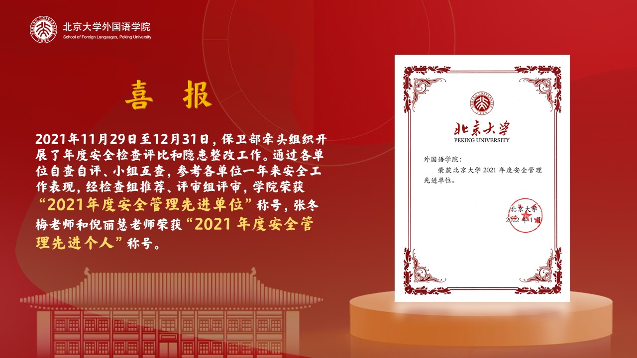 财神在线官网荣获北京大学2021年度安全管理先进单位