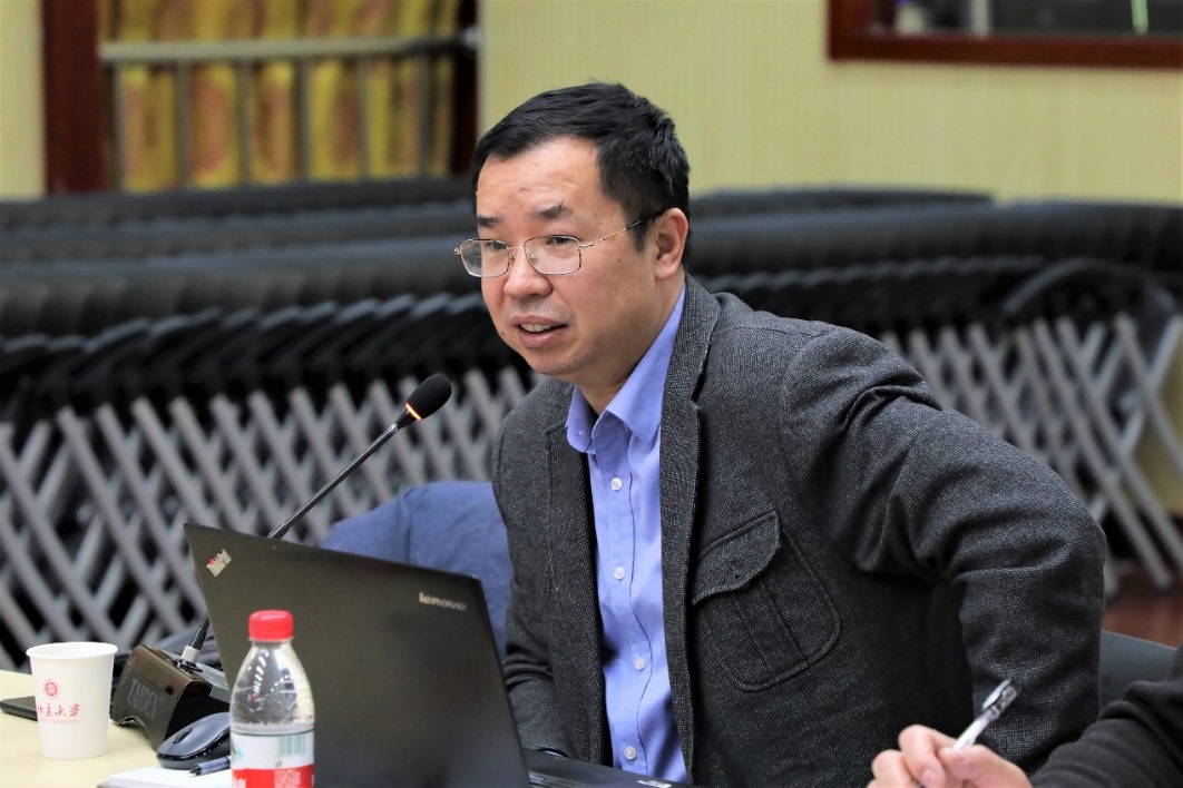 王栋副部长向参会人员介绍了智库工作的背景和开展情况,2015年中共中央办公厅、国务院办公厅出台了《关于加强中国特色新型智库建设的意见》。2018年底,北京大学建立了智库工作领导小组,同时校长办公会审议通过了《北京大学首都高端智库建设经费管理细则(试行)》。王栋副部长指出,智库工作是北京大学“双一流建设”的重要组成部分,北京大学将积极打造智库建设服务平台,从制度建设、学术评价体系、人才队伍、经费管理、信息报送渠道等各个层面为教师提供优质的服务和保障。