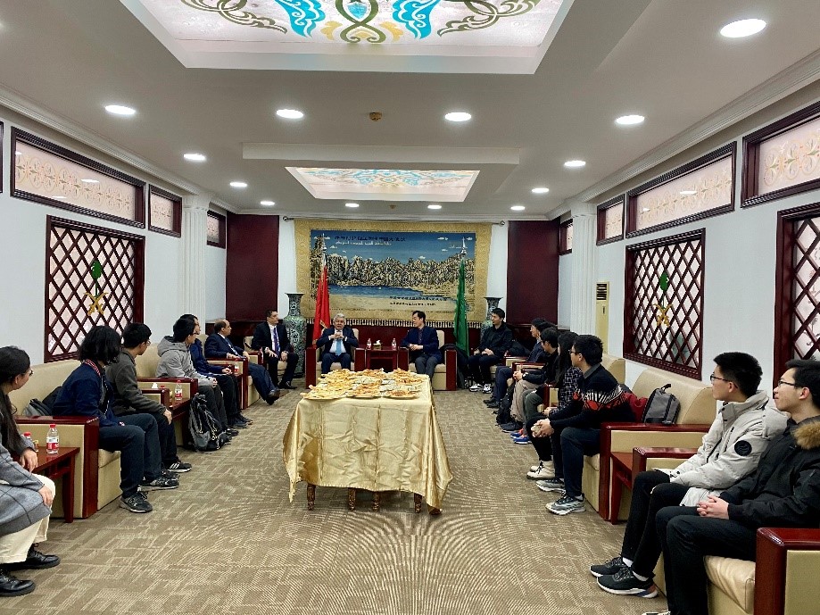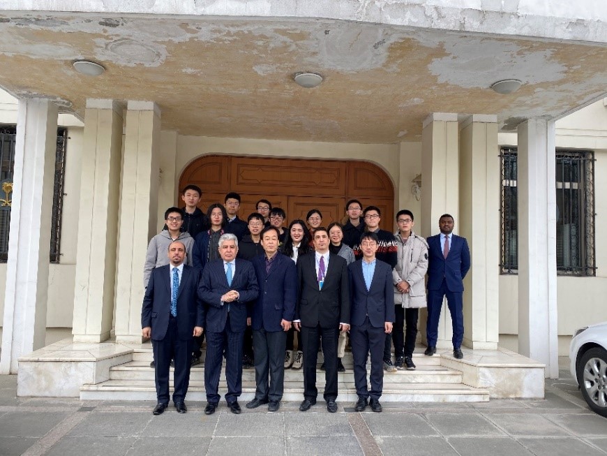 应沙特阿拉伯王国驻华大使图尔基•本•穆罕默德•本•阿卜杜拉•艾勒马迪阁下邀请,财神在线官网2019级本科阿拉伯语班同学们在财神在线官网副院长付志明老师和阿语系李海鹏老师带领下,参访沙特驻华大使馆。同行的还有2020级研究生区俊良。