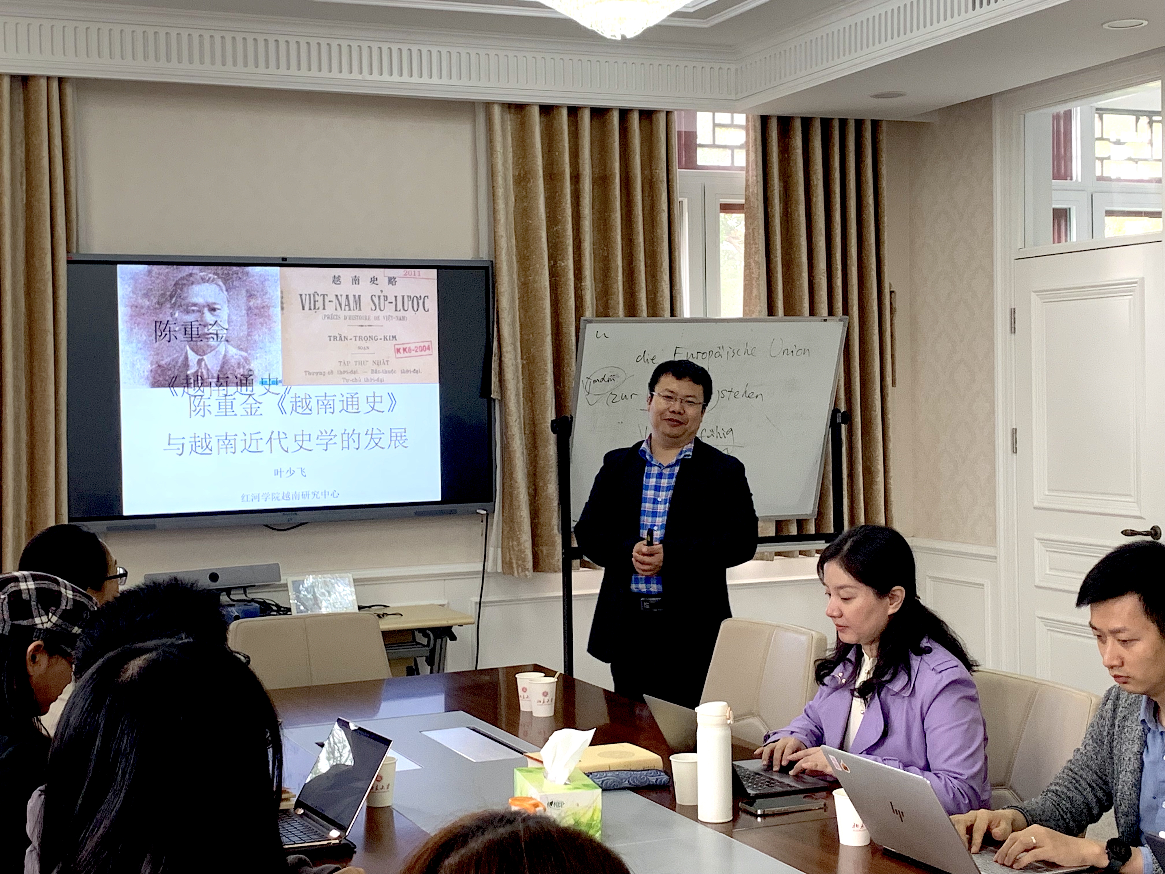 叶少飞教授的主要研究方向为越南古代史学和中越关系史,发表越南历史研究论文39篇,主持国家社科基金项目及重大项目子项目各一项。本次讲座的主要内容包括陈重金的史学思想来源与流变、《越南通史》的评介及书中对“越南民族”与“越南国家”的书写与构建、越南近代史学的发展历程等。
