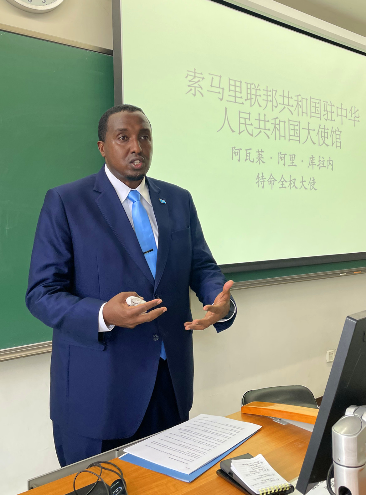 会见后,阿瓦莱大使前往第二教学楼,为阿拉伯语系师生做了题为“中国与索马里关系”的讲座。