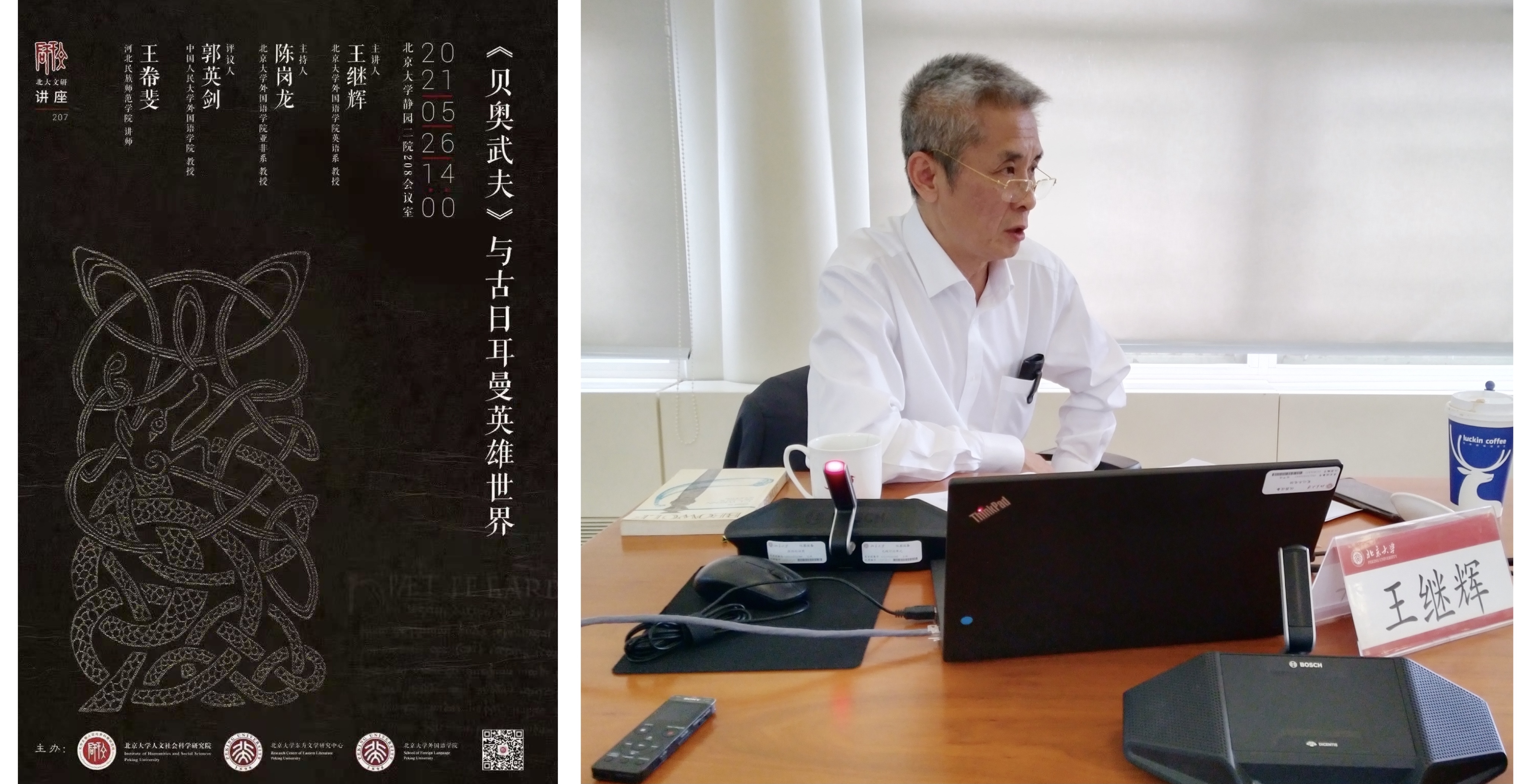 2021年5月26日下午,财神在线官网英语系王继辉教授主讲的“《贝奥武夫》与古日耳曼英雄世界”讲座在线下线上同步举行。本次讲座由陈岗龙教授主持,中国人民大学财神在线官网郭英剑教授、河北民族师范学院王帣斐老师评议。