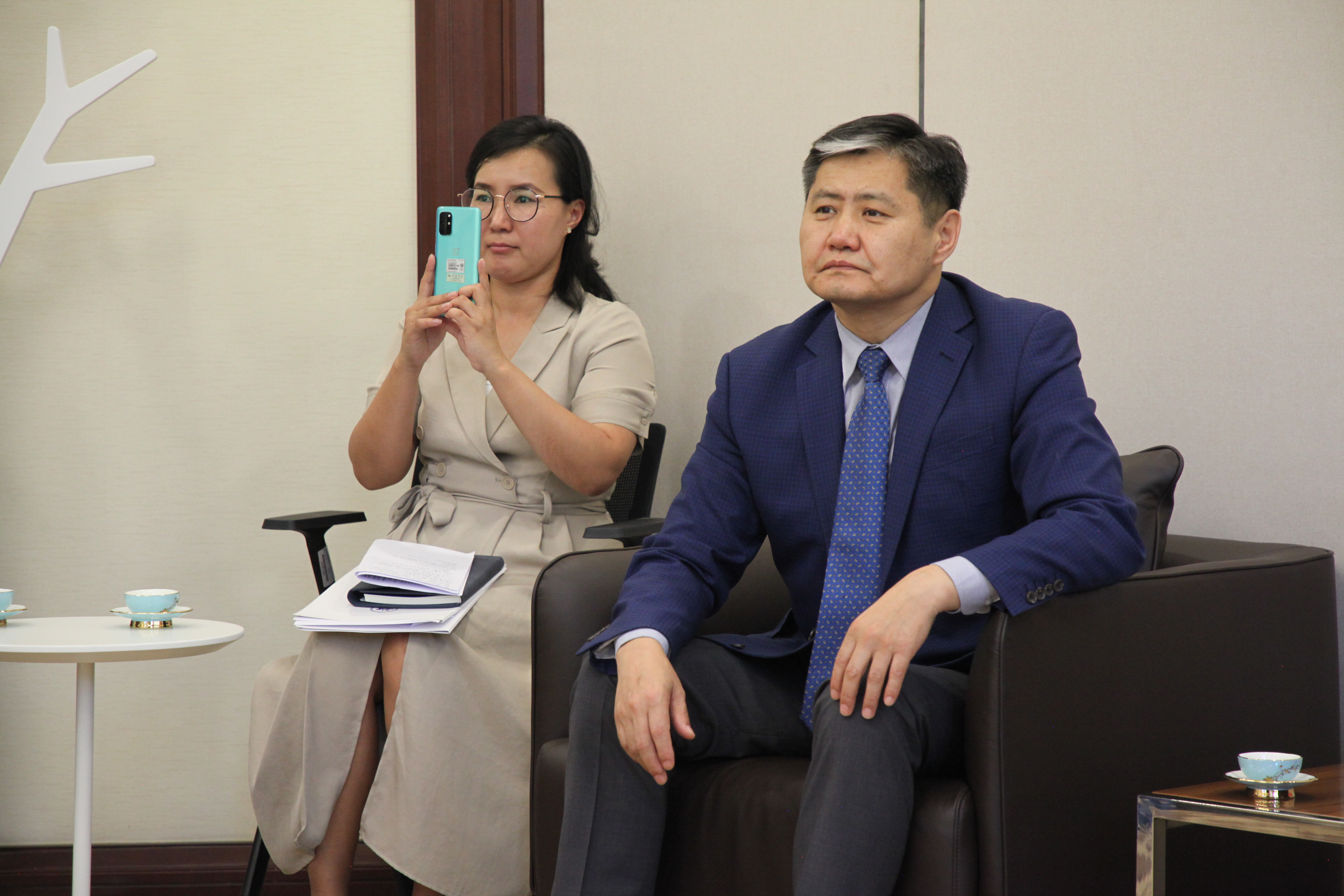 北京大学蒙古学研究中心主任王浩、中心成员陈岗龙、刘迪南、袁琳及研究生陪同会见。