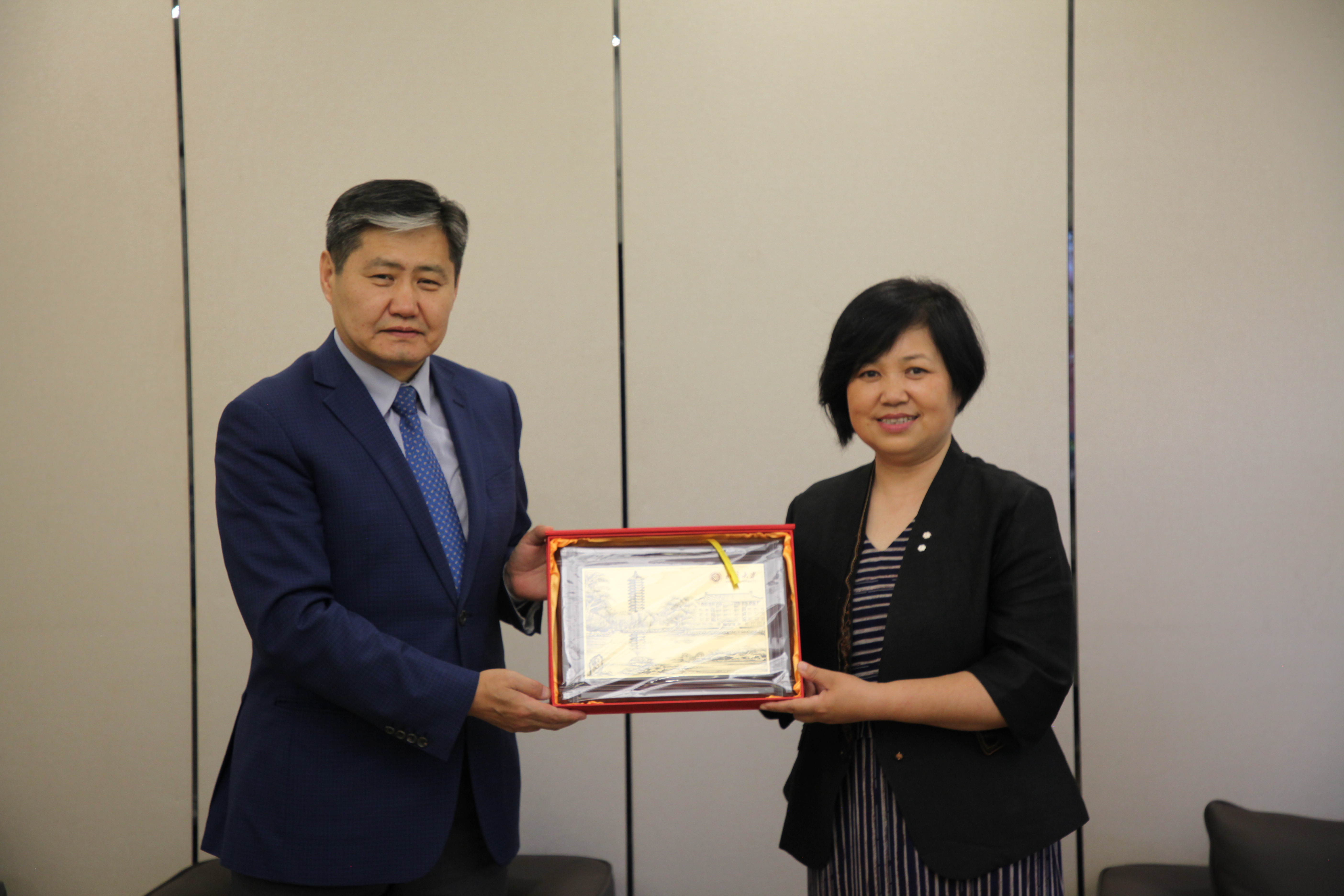 最后,李淑静书记向巴德尔勒大使一行赠送了北大纪念品,使馆向北大师生赠送了书籍和蒙古国纪念品,会见在友好的气氛中结束。