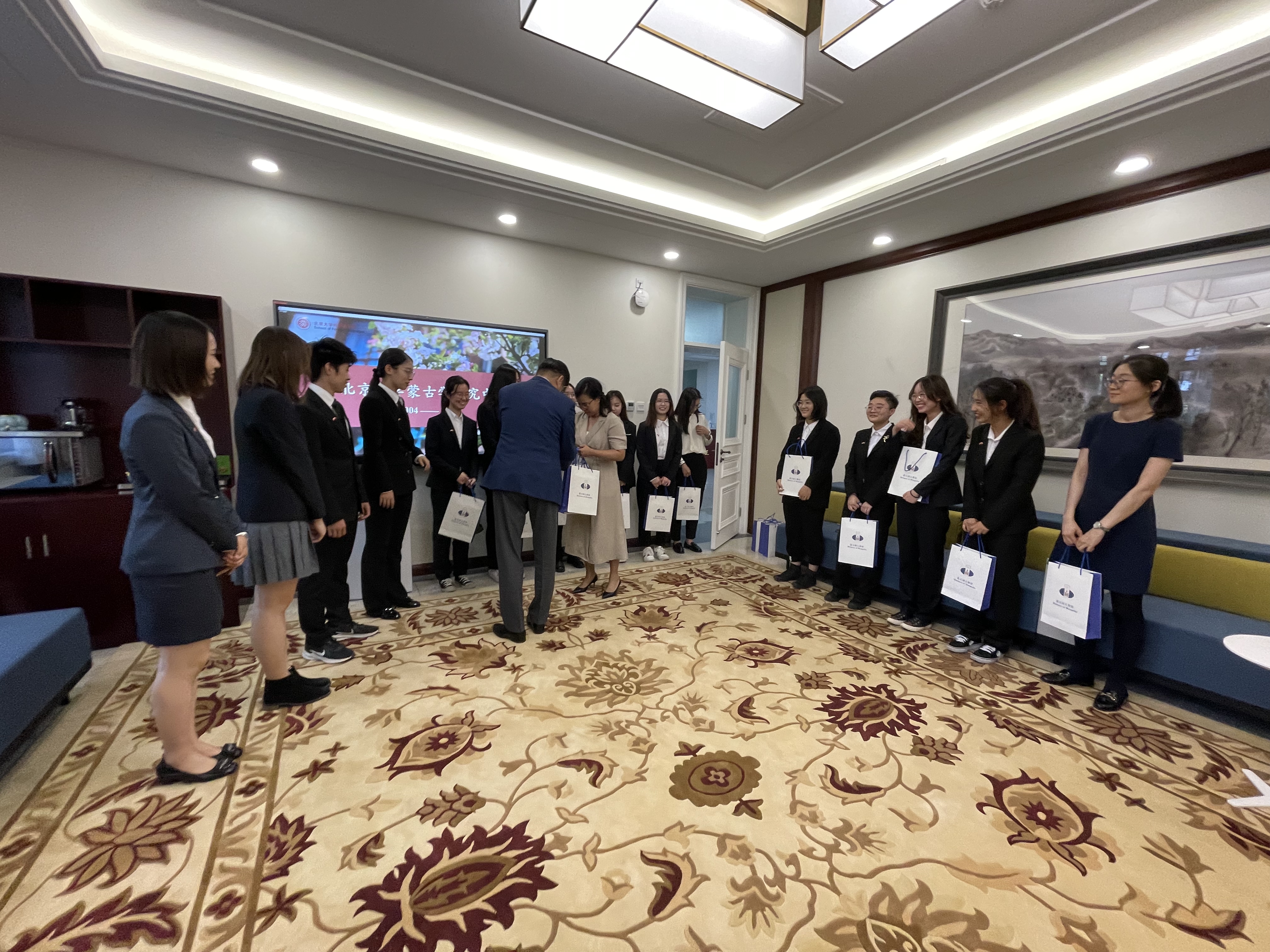 随后,巴德尔勒大使与布拉根女士认真观看了北京大学蒙古学研究中心简介视频,赞誉了中心20年来在传统蒙古学、蒙古国研究及中蒙人文交流方面所取得的成就。