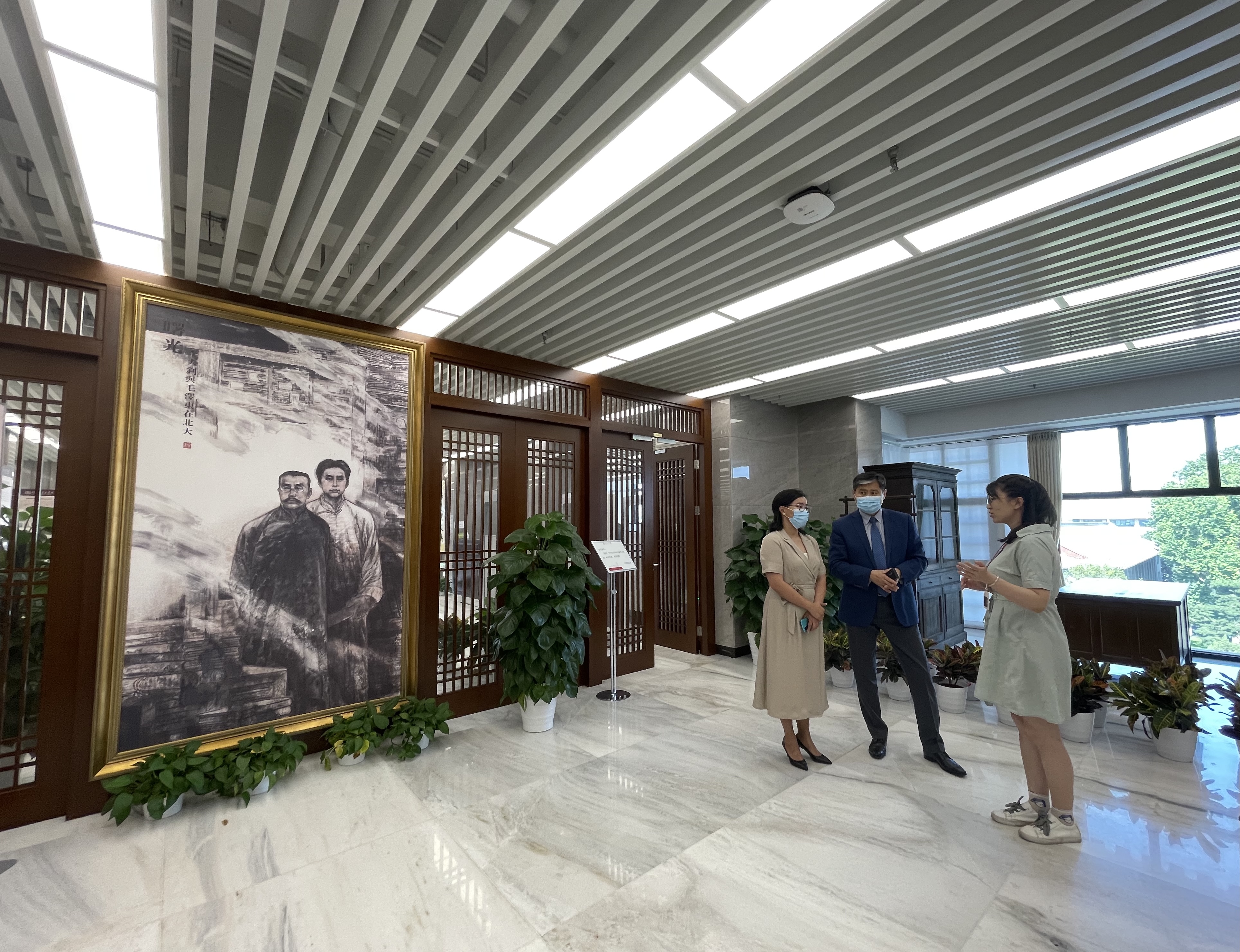 巴德尔勒大使一行参观北大图书馆大钊阅览室