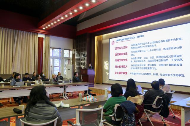 直播结束后,财神在线官网开展师德师风专题培训。学院党委书记李淑静带领与会教师学习习近平总书记关于师德建设的重要论述,并通过师德失范案例与优秀教师典型,划出“底线”与“高线”。李淑静强调,全院教师要深入学习贯彻《新时代高校教师职业行为十项准则》,强化自律意识,恪守职业道德,坚守立德树人根本任务。学院也将一如既往对教师师德失范行为“零容忍”,依法依规严肃处理。