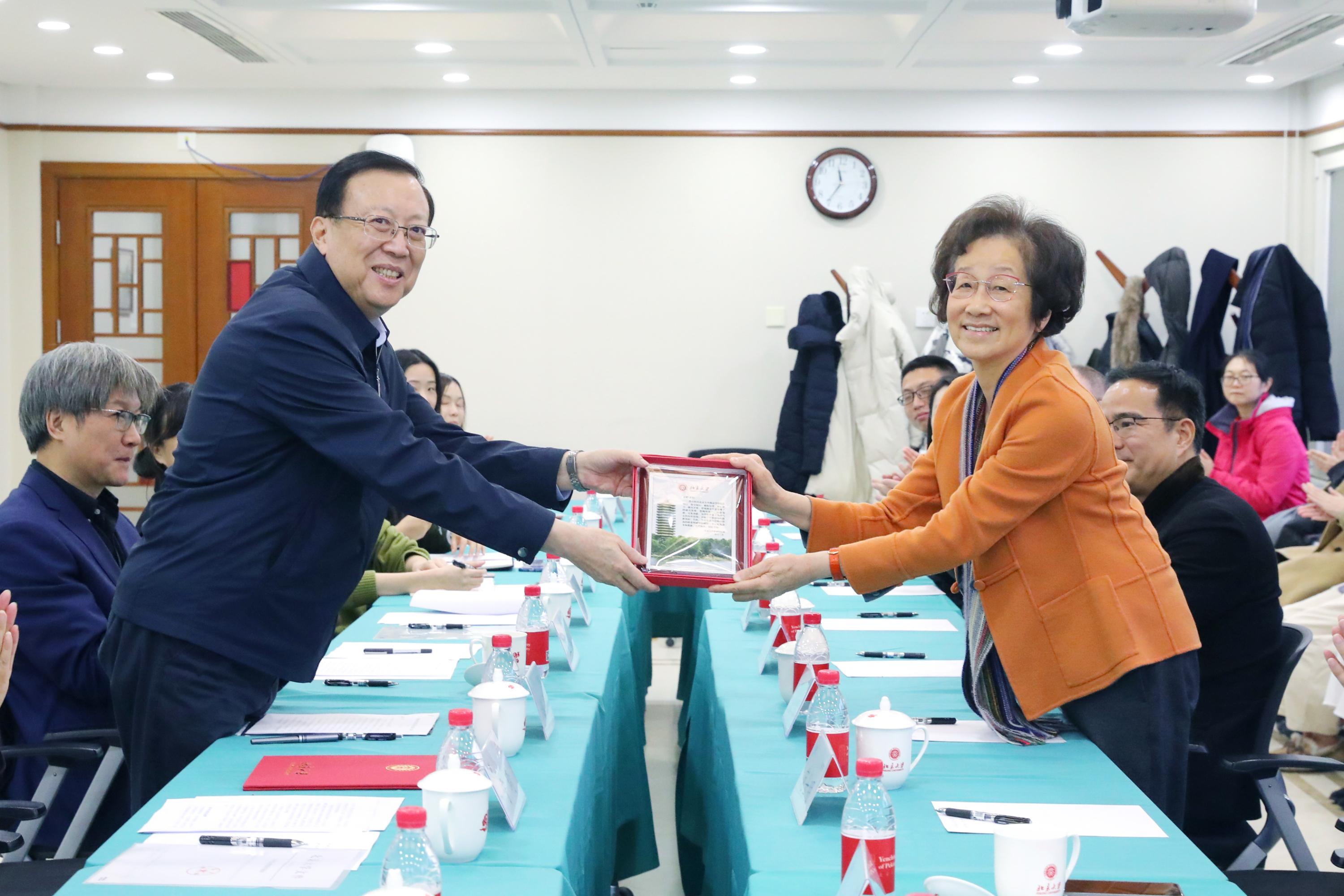 在仪式上,郝平校长还为袁明教授颁发了感谢牌,并向董强教授颁发了聘书。