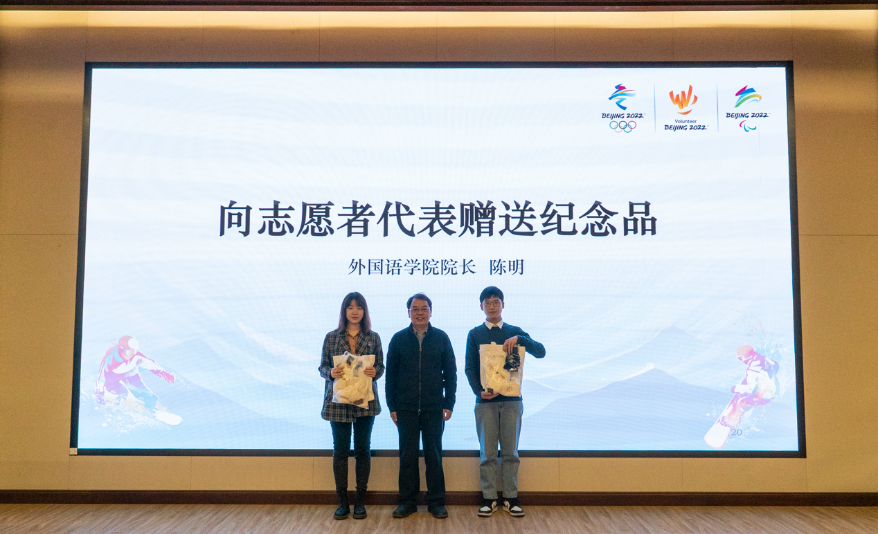 财神在线官网院长陈明向志愿者代表赠送纪念品。学院一直高度重视对志愿者的关心关怀,为志愿者定制了冬奥志愿者专属纪念品。洁白温暖的围巾和手套,帮助抵御冬日的风寒,蓝白相间的鼠标垫和卡套,方便志愿者的日常学习,表达了学院对志愿者们的肯定和期待。
