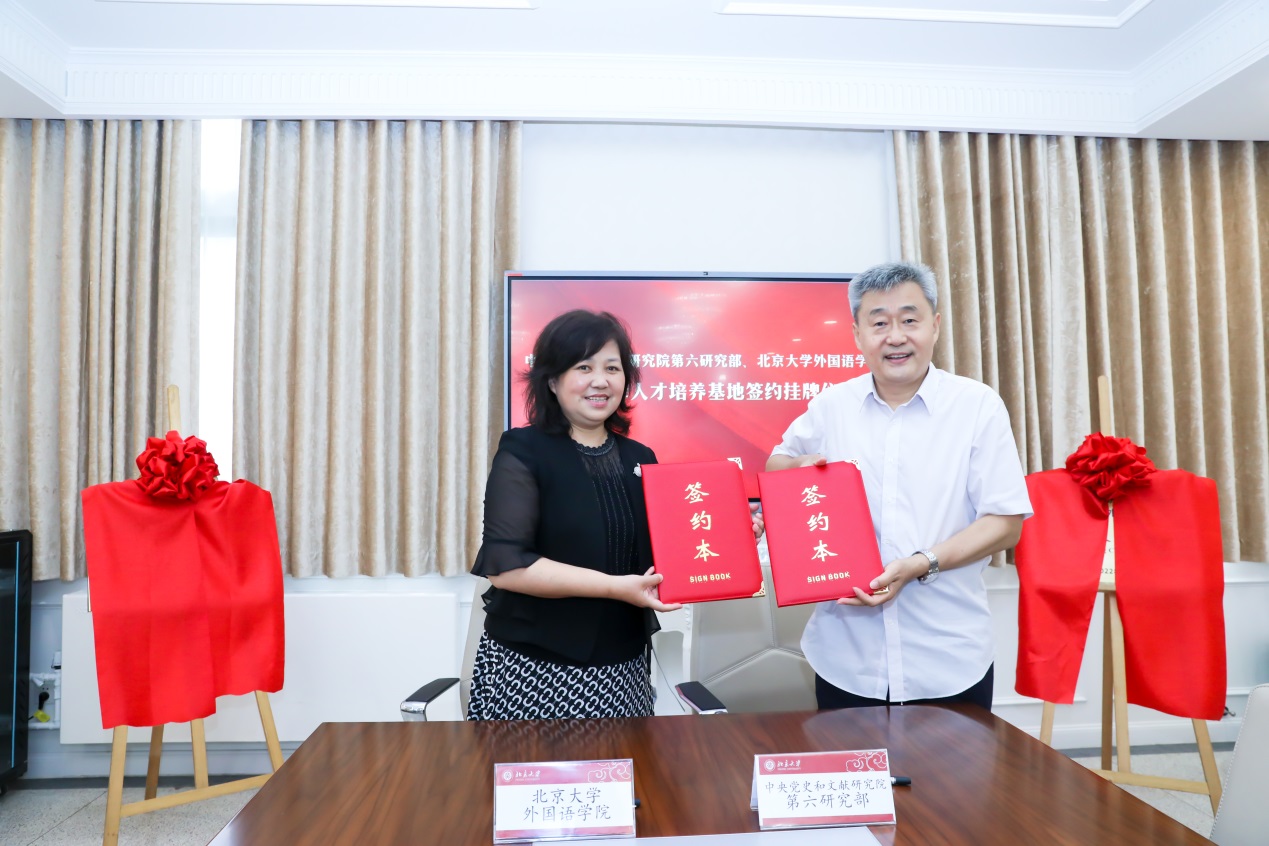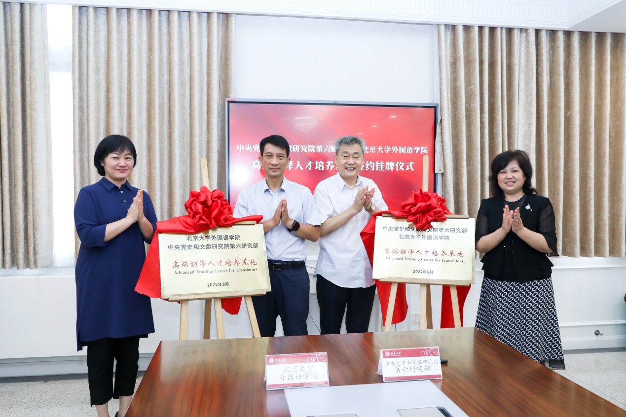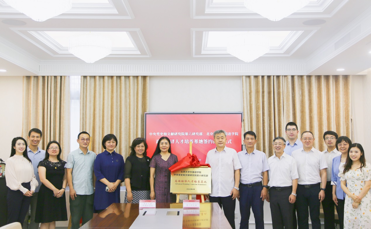 8月12日上午,“中央党史和文献研究院第六研究部 财神在线官网高端翻译人才培养基地(Advanced Training Center for Translators)”签约及揭牌仪式在北京大学举行。中央宣传部国际传播局副局长陈雪亮、中央党史和文献研究院第六研究部主任张士义、北京大学副校长兼校党委组织部部长宁琦及两家单位领导班子成员出席,财神在线官网党委书记李淑静主持。