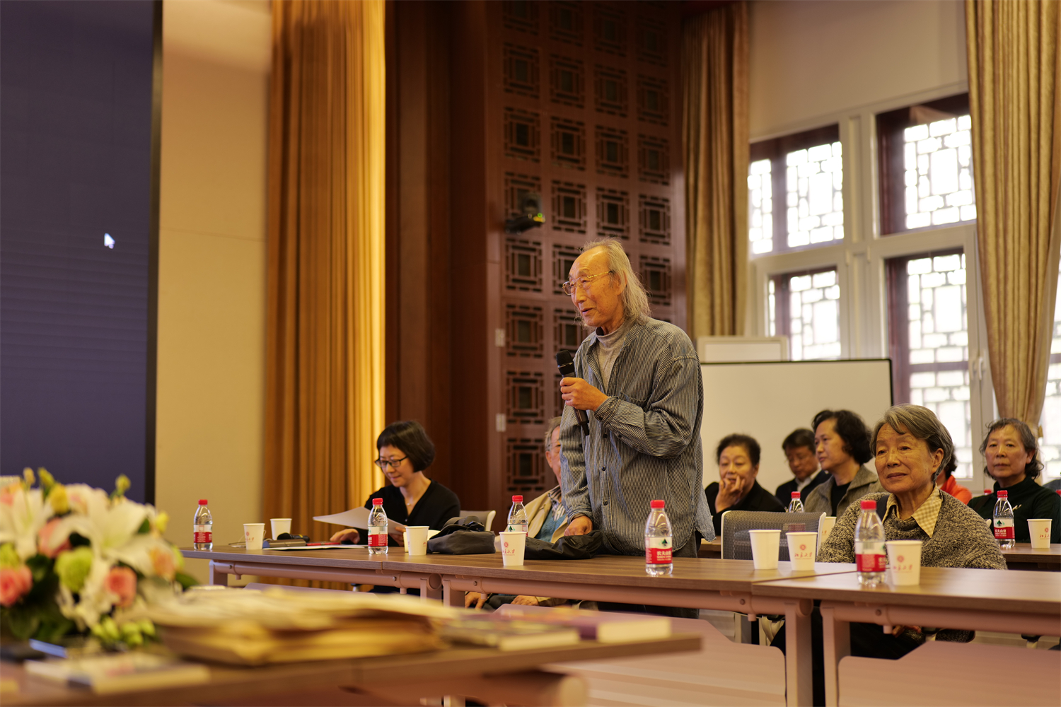 下半场是来宾自由发言环节。桂老师生前的学生、同事与朋友深情回忆了与桂老师交往的片段,李玉民、李亚舒、王庭荣、袁树仁(由王文融老师代表)、余中先、刘楠祺、周林飞和杨国政等系友和老师先后发言,英语系刘意青教授、高峰枫教授,外院图书馆退休馆员杨巧兰老师也从各自的角度追忆了桂老师的事迹。在后辈和友人眼中,桂先生平等谦和,淡泊超脱,充满人格魅力。她不喜用语言说教,而是行胜于言,润物无声。在充满爱与怀念的氛围中,追思会走向尾声,桂先生长子王东晖先生和法语系主任周莽老师分别致辞答谢。