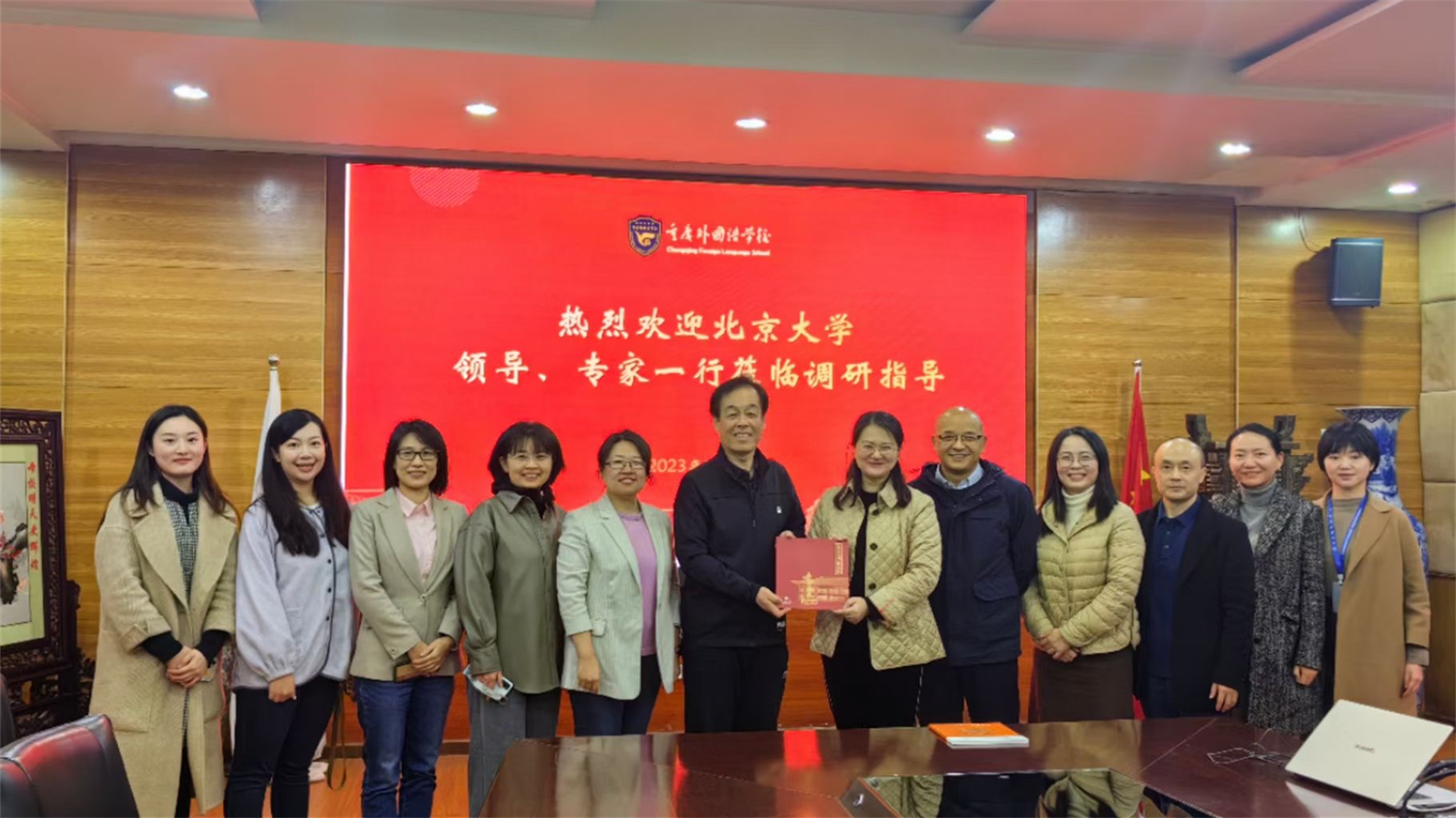 11月16日下午,北大外院一行前往重庆外国语学校,学校党委书记张季菁、常务副校长唐东、教务处主任童朝阳、实外副校长钟艳、教科处主任罗卉卉出席。多年来,重庆外国语学校诸多优秀学子圆梦北大外院,在燕园精进学业、升华思想,涵育家国情怀、投身伟大时代,为北大和重外赢得了荣誉,为国家民族复兴贡献了智慧和力量。座谈会上,双方就外语人才培养理念,高校和中学如何进一步加强交流合作,在翻译人才队伍建设中更好接轨等问题进行了充分交流。