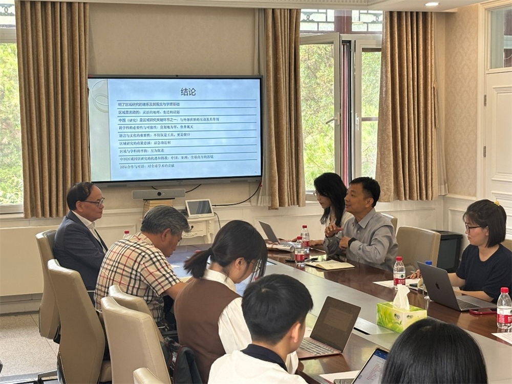讲座最后部分,刘宏教授介绍了跨界研究的方法,并对讲座作结,刘教授提出区域是流动的,是灵活的地理与变迁的议题;中国(研究)是区域研究关键的环节之一;区域研究强调跨学科的必要性与可能性,学者不应画地为牢、坐井观天;作为外语人,应摒弃语言工具论,将语言与文化视为破除藩篱的窗口,以进一步扩大中国区域国别研究的发展纵深与对国际学术的贡献。