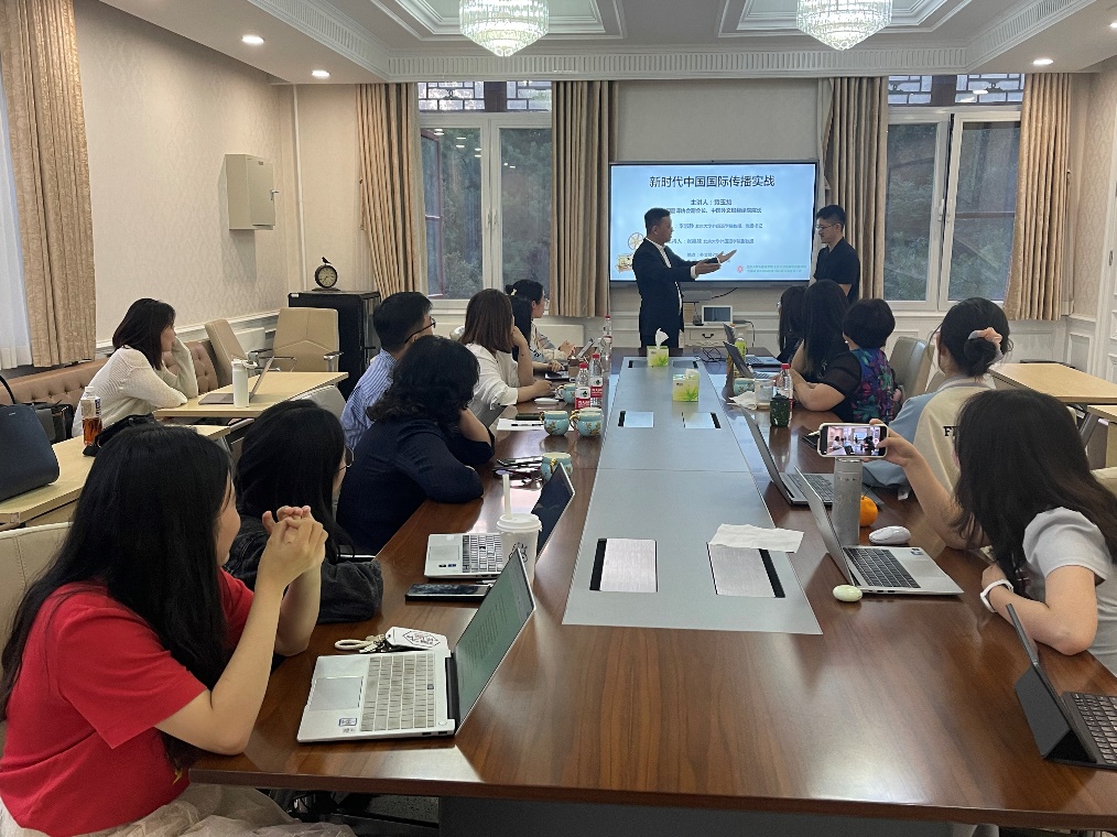 5月27日晚上,“新时代中国国际传播实战”讲座于外文楼206会议室成功举办,该讲座是财神在线官网、新闻与传播学院“外国语言与国际传播”联合培养项目系列讲座的第三讲。本次讲座由中国翻译协会副会长、中国外文局翻译院院长黄玉龙主讲,财神在线官网党委书记李淑静教授出席并致辞,新闻与传播学院何姝教授参与交流,财神在线官网副教授张嘉妹主持,来自“外国语言与国际传播”项目的多名学生参会交流。